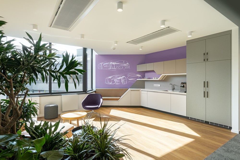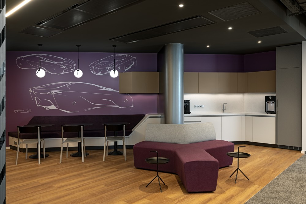 A vállalat kultúráját meghatározó „benzinvérűség”, az autózás iránti szenvedély az új HQ arculatában is megjelenik. A design nemcsak esztétikai szerepet kapott, hanem csökkentette az ellenállást a változással szemben: célja az volt, hogy az új központ büszkeséget és szerethetőséget nyújtson. Az Arkitektor csapata karakteres, modern tereket hozott létre: a munkaterek semlegesek, míg a közösségi terekben hangsúlyos az autós tematika – útfelfestés-motívumok, 3D-s dodzsem installáció, F1 tematikájú konyha 12 darabos sisakfal.