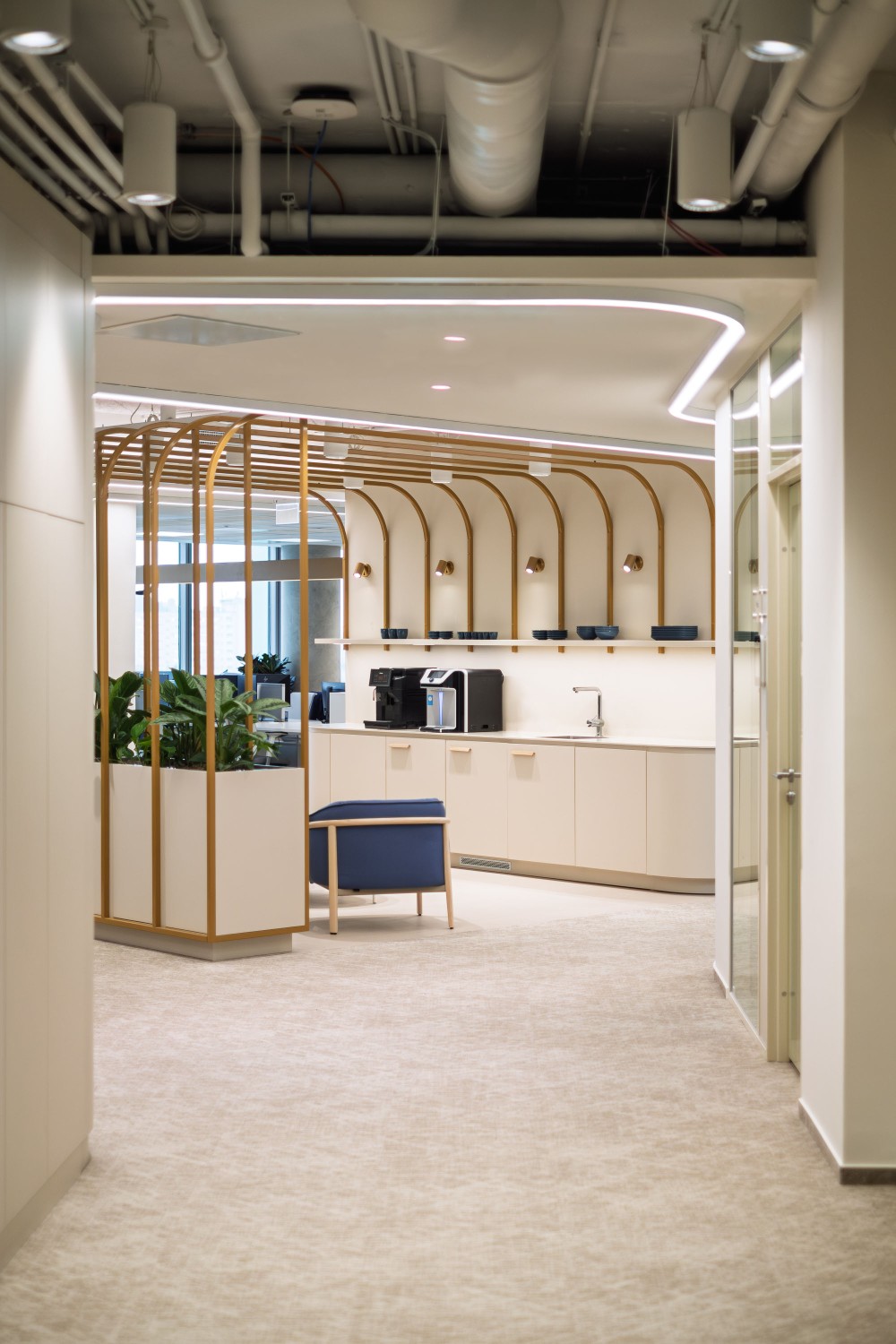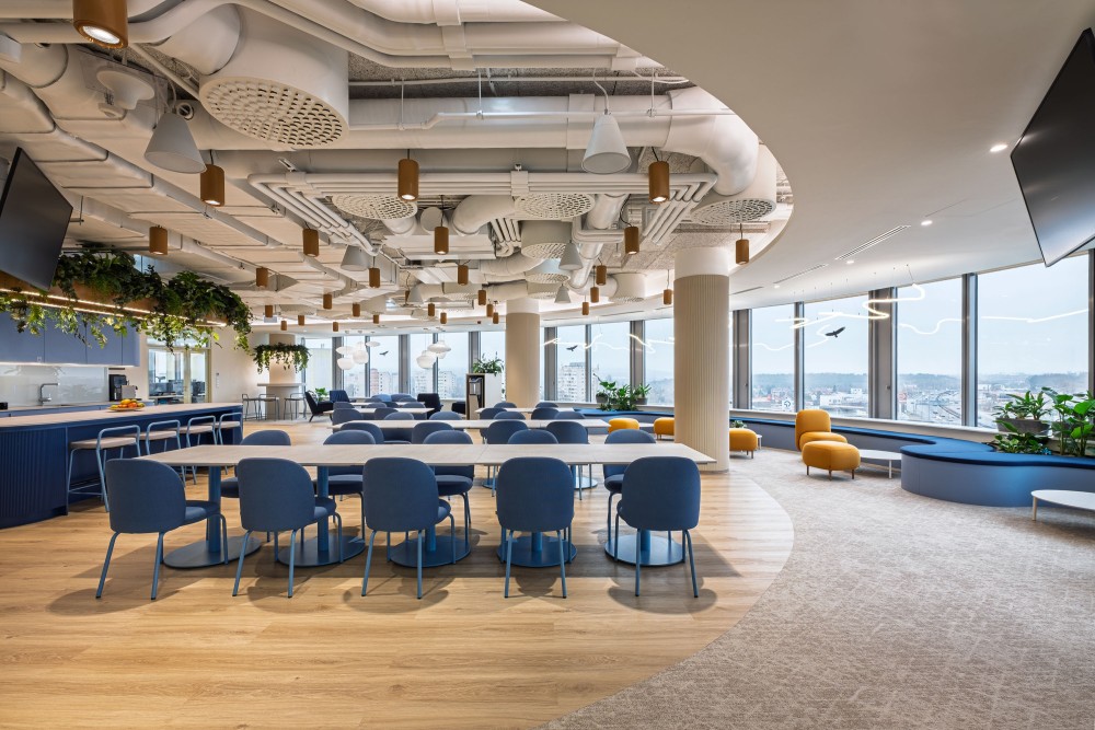 Az új iroda 2155 m2-es területen került kialakításra, a térkoncepcióval kapcsolatos egyik kiemelkedő igény volt egy olyan mobilizálható téregyüttes létrehozása, melyek szeparáltan külön étkező-konyha, külön konferenciaterem funkciót töltenek be, egybenyitva azonban nagyobb létszámú - all-staff jellegű – összejövetelt tesz lehetővé. A térszervezés rétegződése a legkisebb részletekig átgondolt, az élénk zónáktól fokozatos átmenetek vezetnek védettebb, fókuszra optimalizált helyekig. A multifunkciós tér kiemelt hangszigetelő értékkel rendelkező, hangelnyelő felületű mobilfal elválasztással lett tervezve. A kiválasztott mobilbútorok is a könnyen konfigurálható térhasználatot, agilis munkamódot támogatják.