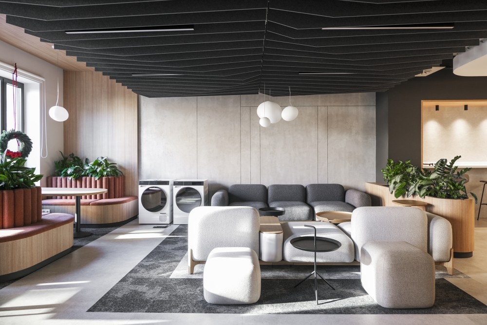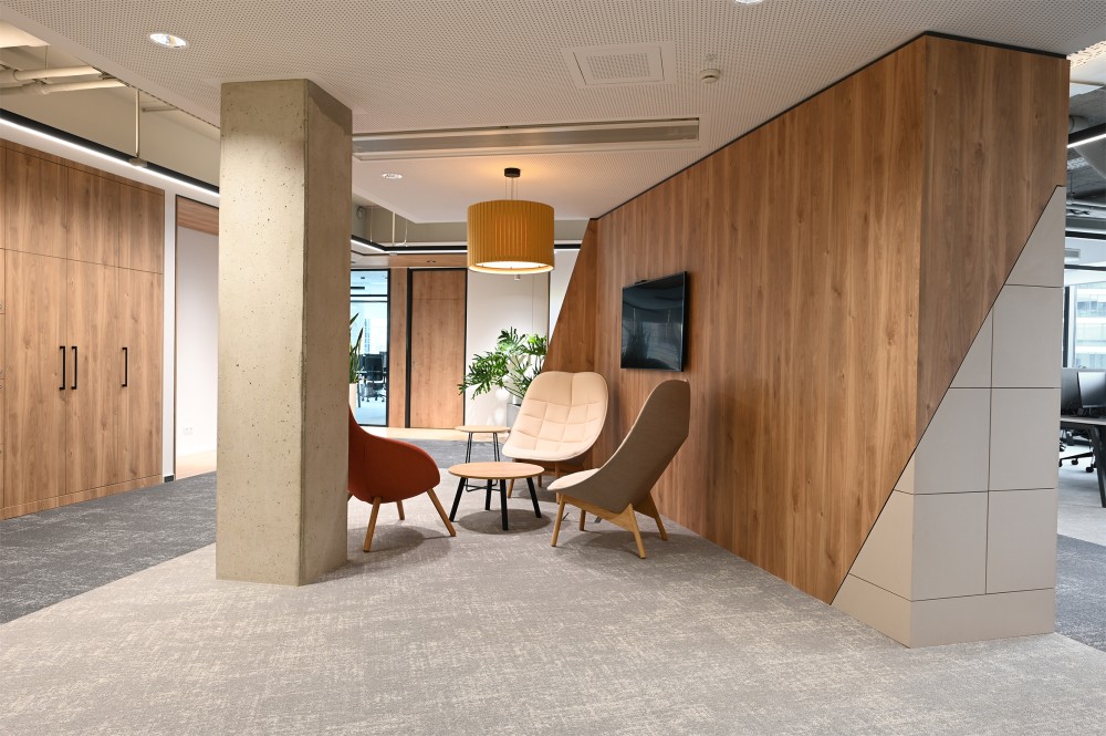 Friss büszkeségünk a nyáron átadott AutoWallis iroda a Liberty irodaházban, ahol mintegy 5700 m²-en egyesülhettek a korábban különböző helyszíneken működő tagvállalatok. Belsőépítész csapatként hatalmas élmény volt részesei lenni egy ilyen szerteágazó, komplex folyamatnak, és hozzájárulni az egyik legdinamikusabban fejlődő hazai cégcsoport sikeréhez. Az új iroda kialakítása ezúttal szervesen kapcsolódott a vállalat növekedési stratégiájához, ami nagyobb felelősséget és összetettebb feladatot jelentett. A végeredmény nem csupán leképezte, hanem formálta is a vállalat működését – az új iroda valódi mérföldkő lett. Akár azt is mondhatnánk: az esztétika itt valóban nagyban hozzájárul a cégcsoport jövőbeli sikeréhez!