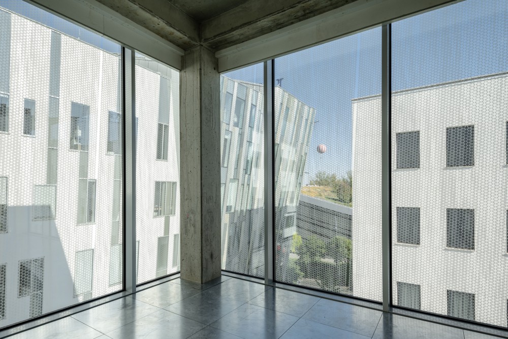 A Vitrum valódi kuriózumnak számít a belvárosban és a budapesti irodapiacon: az impozáns, háromrétegű üvegfelületeken keresztül a belső kertre néző homlokzatok különleges térélményt teremtenek. Az épület elhelyezkedésének vitathatatlan előnye, hogy a közvetlen utcafronti kapcsolat hiánya miatt a forgalmas Dózsa György út zaja jóval kevésbé éri el, ebből fakadóan is nyugodtabb atmoszférát kínál.