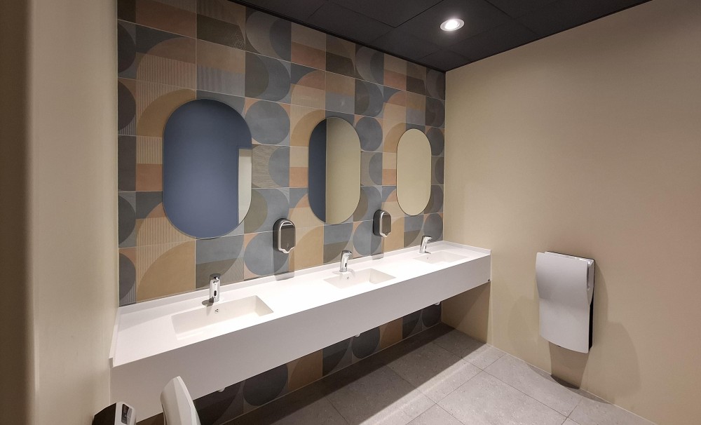 A közösségi mosdók is teljes felújításon estek át új víz- és szennyvízrendszerrel, automata ajtókkal, infracsaptelepekkel és korszerű burkolatokkal.