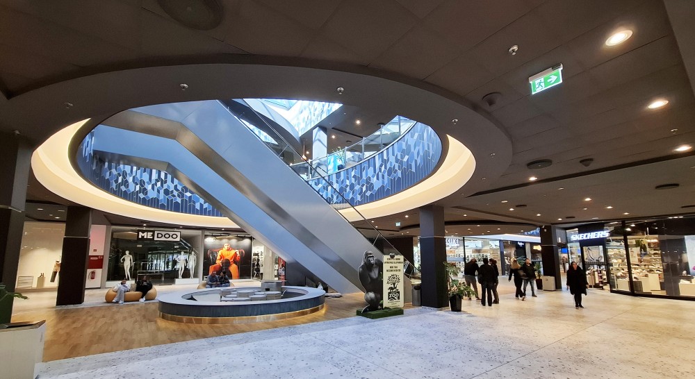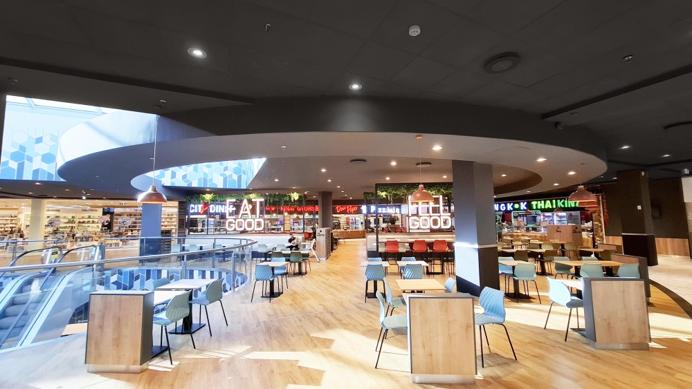 A világítás korszerűsítését 700 új LED-lámpával, illetve egyedi LED-díszlámpákkal hajtották végre, amelyek egyszerre szolgálnak energiahatékonysági és esztétikai célokat. Az ételudvar korábbi dobogórendszerének elbontásával tágas, letisztult tér jött létre, amelynek az új bútorelemek, a dekorvilágítás és a növényi dekoráció ad egyedi hangulatot.