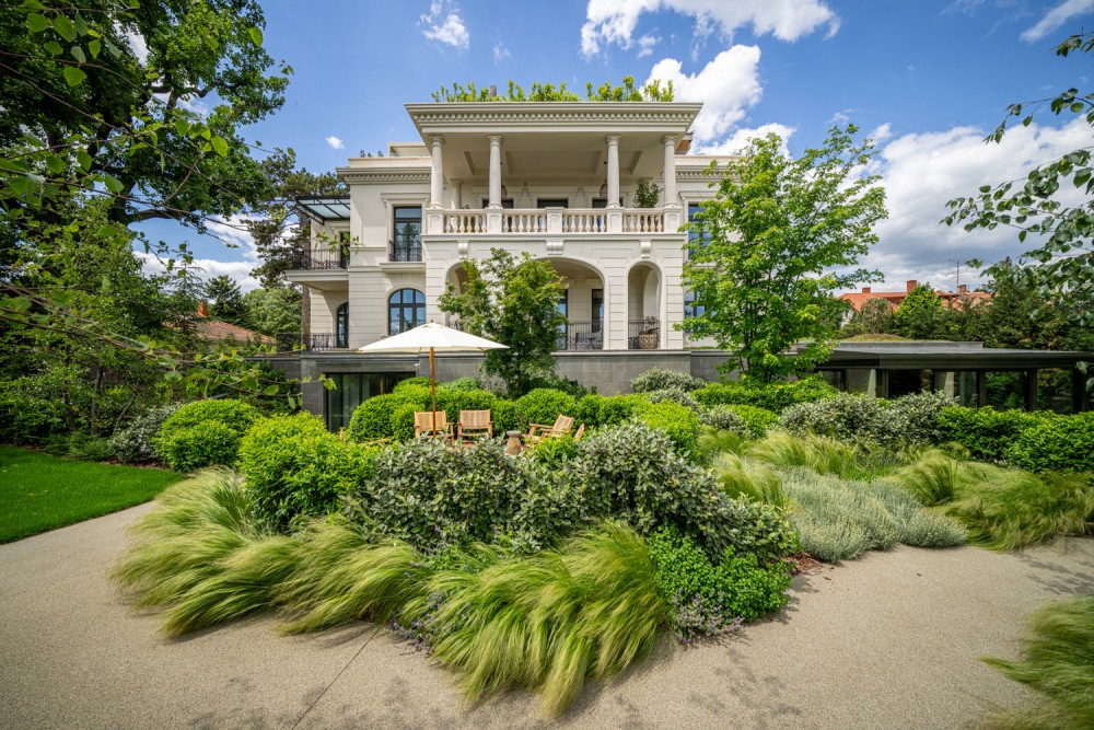 A tervezés egyik nagy érdeme, hogy a védett épületet és parkját a felújítás mellett úgy sikerült bővíteni, hogy az új épületrészek „láthatatlanok” maradtak. Bárhonnan nézünk a felújított villára, annak tömege egykori valójában tárul elénk.