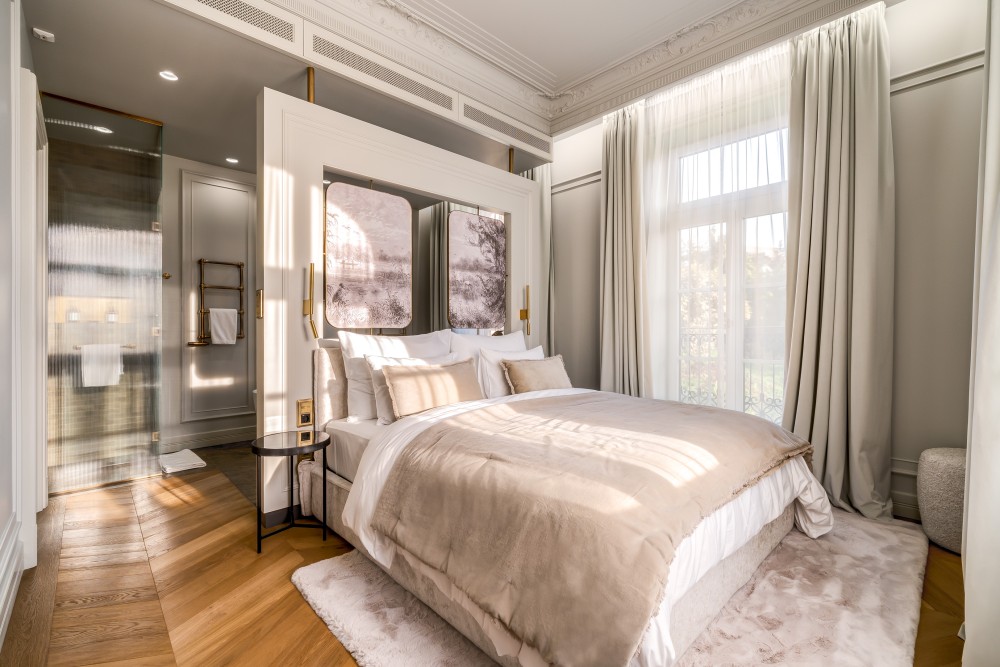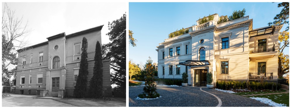 A fejlesztés során az egykori méretének megfelelő, újraegyesített telken a főépület eredeti formájú felújításhoz az egykori villa, tiszta eklektikus stílusú állapotát vettük alapul. Az épület homlokzati kialakítását az eredeti felvételek, képeslapok alapján rekonstruáltuk, külső megjelenését újjáépítettük. A főépületben és a bővítményi részen 13 lakosztállyal rendelkező prémium kategóriás szállóépületet alakítottunk ki. A főépületen a műemléki irányelveknek megfelelően kisebb bővítéseket eszközöltünk. A létrejövő régi- új épület homlokzati megjelenésénél továbbra is az illeszkedés- elkülönülés elvét követtük.