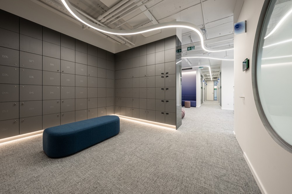 Az asztaloknál minimális tárolókapacitás volt szükséges, ugyanakkor ezt nagyszámú locker egészíti ki, amelyek lehetővé teszik a személyes eszközök tárolását.