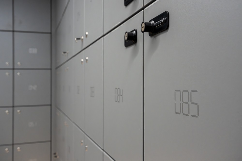 Az asztaloknál minimális tárolókapacitás volt szükséges, ugyanakkor ezt nagyszámú locker egészíti ki, amelyek lehetővé teszik a személyes eszközök tárolását.