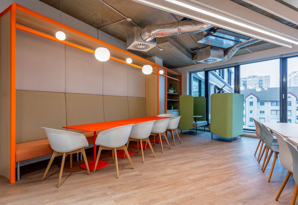 2.: Activity based working concept: Munkatérszervezési alapelveinket a New Work nevű keretrendszer foglalja össze, melyet a BKI tervezőiroda segítségével alkalmaztunk a budapesti irodára. A New Work egy bizalomra épülő keretrendszer, melynek alapja, hogy a siker eredményekhez kötött és nem helyszínekhez. Ebben a modellben a csapatok maguk döntik el, hogyan működnek együtt – virtuálisan, az irodában, vagy az ügyfélnél –, aszerint, mi támogatja legjobban a közös célokat.