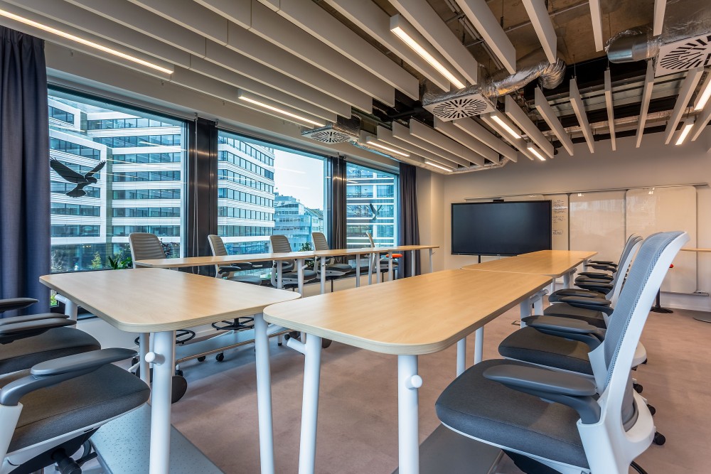 Nemzetközi vállalatként, decentralizált csapatokkal az a célunk, hogy irodáinkban globálisan egységes élményt biztosítsunk. Ennek alapja az egységes tervezési elveink – mint a tértipológia, színkódok, berendezés típusok – ezek mind segítik, hogy munkatársaink bárhol azonnal megértsék, hogyan használhatók az adott terek.