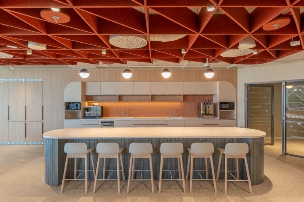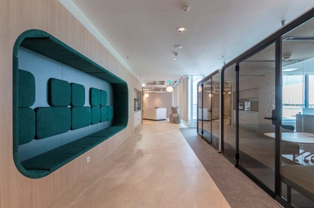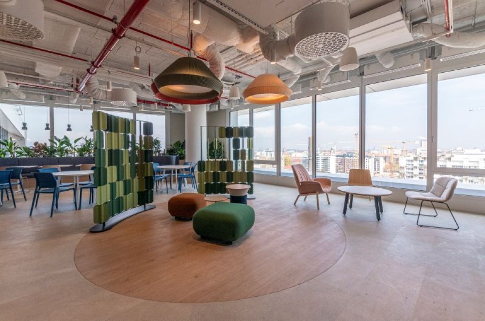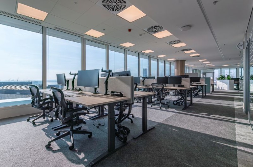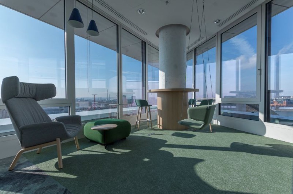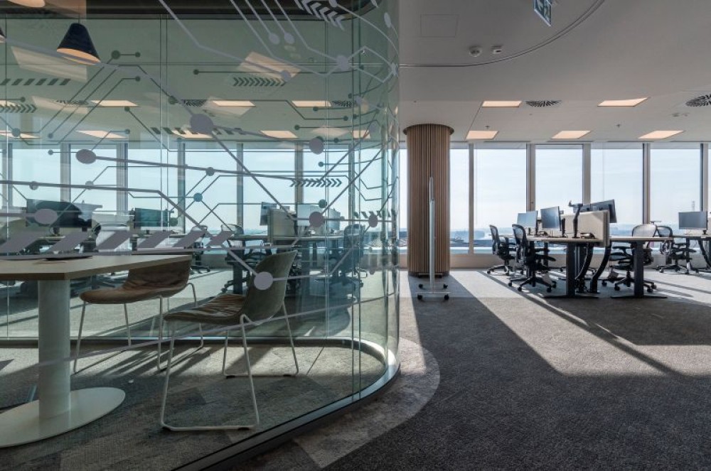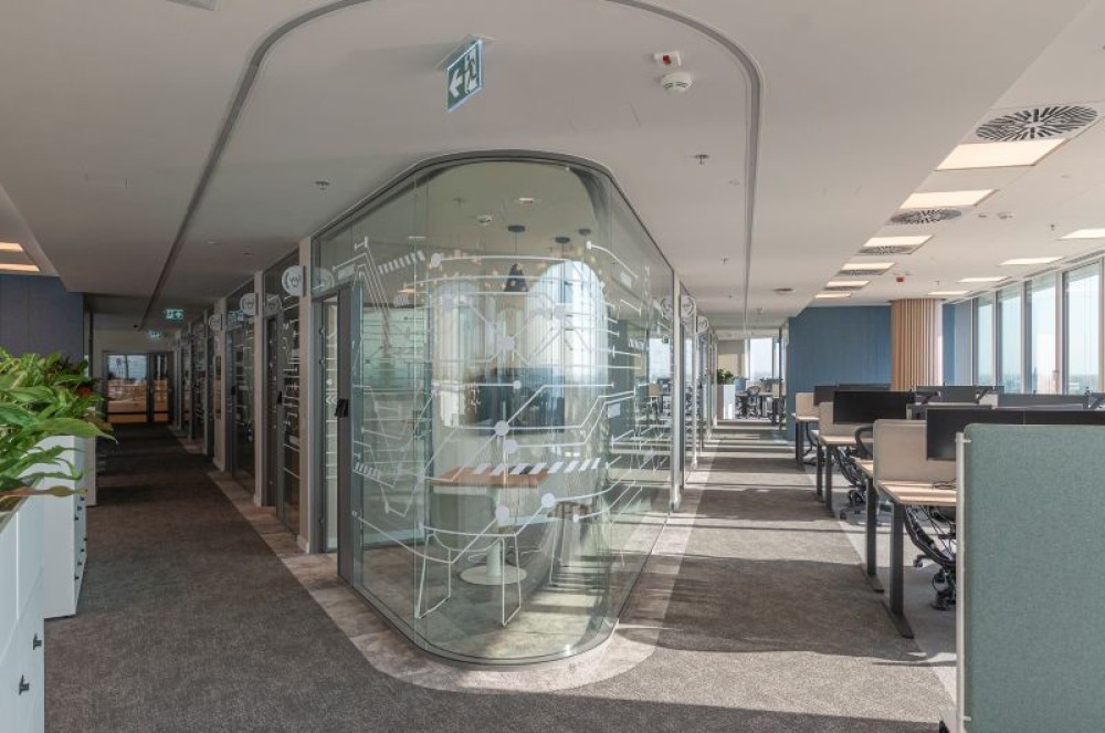Az ARM Hungary Kft. irodája példaértékű módon ötvözi a csúcstechnológiát, az inspiráló munkakörnyezetet és a munkavállalói jóllétet. A microchipek világát megidéző design egyedi és hiteles módon reflektál a vállalat tevékenységére, miközben a kiváló akusztikai teljesítmény és a gondosan kiválasztott, minőségi anyagok nyugodt, fókuszált munkavégzést tesznek lehetővé. A modern irodabútorok, a rugalmasan alakítható terek és a szinte 360 fokos panoráma mind hozzájárulnak ahhoz, hogy az iroda nemcsak funkcionális, hanem inspiráló és jövőbe mutató munkahely legyen.