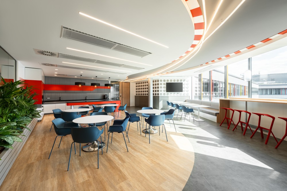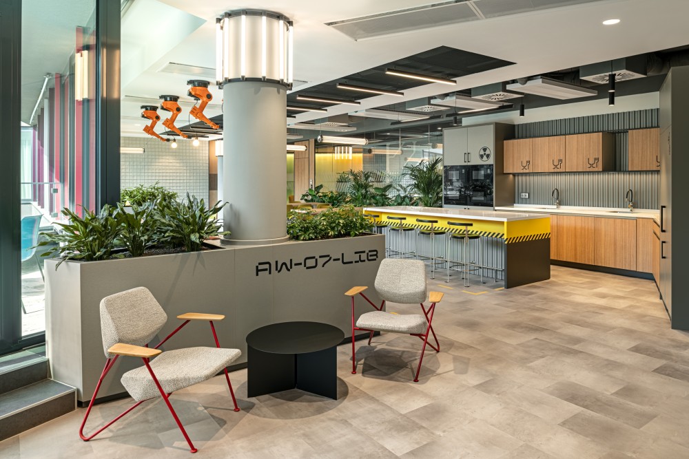 A 3 szinten, több mint 5700 m²-en kialakított iroda a munkavállalók aktív bevonásával készült. Kérdőívek segítették a terek kialakítását és a design-elemek, irodai kiegészítők kiválasztását; felmértük a dedikált asztalok fontosságát, a közlekedési szokásokat és a parkolási igényeket. A kivitelezés alatti bejárásokon kisorsolt munkatársak elsőként láthatták az új tereket. Az eredmény egy közösen formált vállalati otthon.