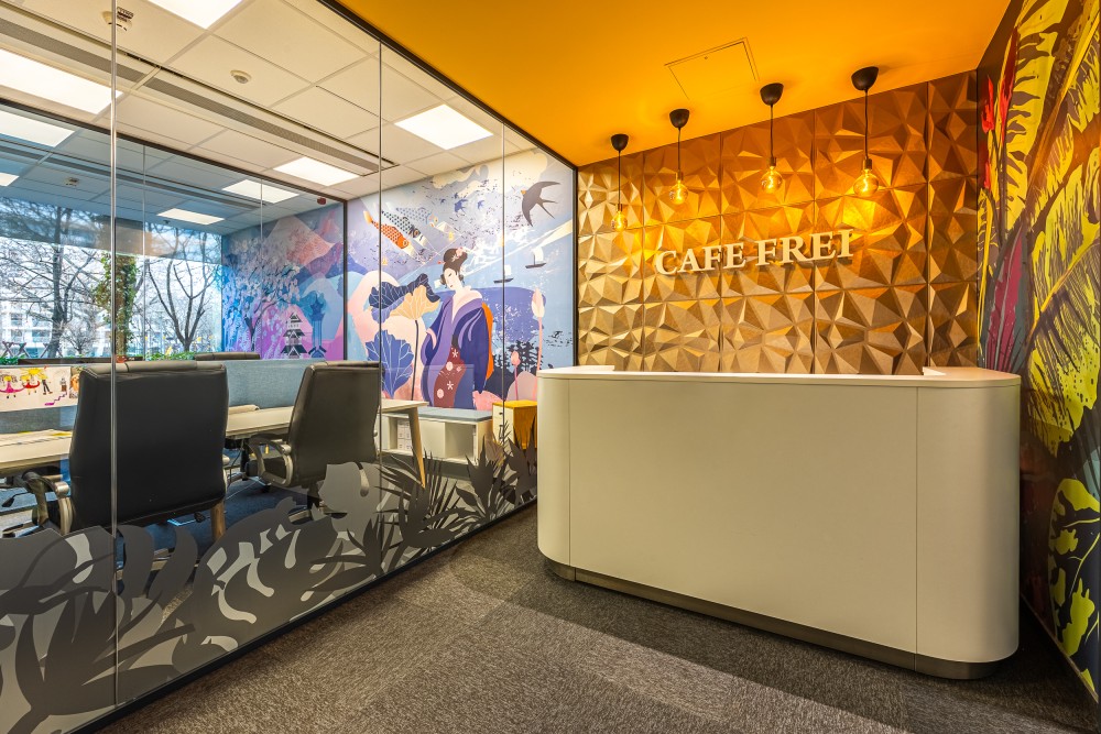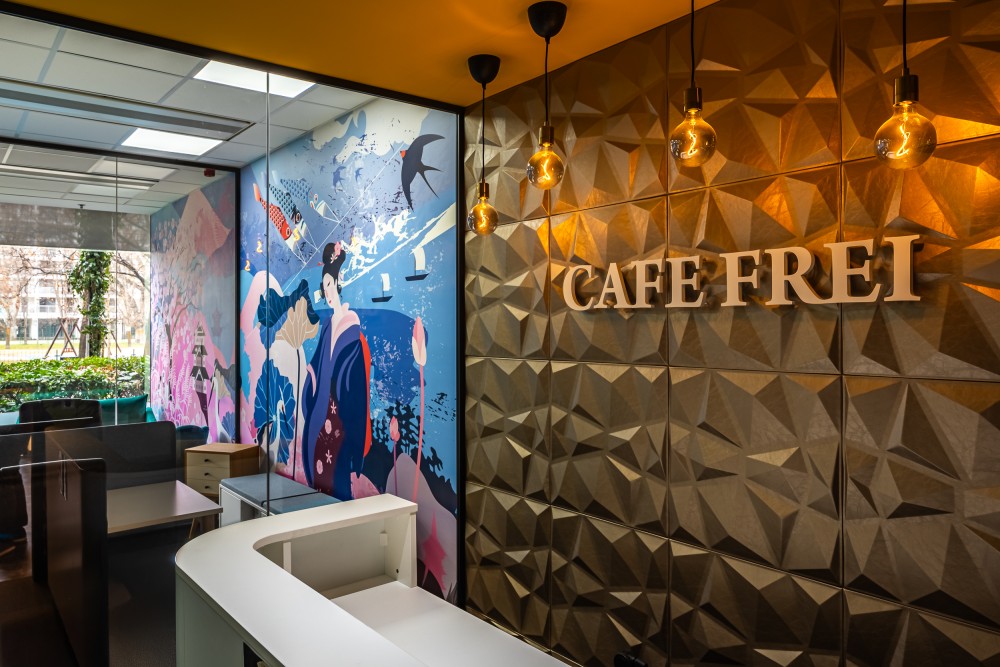 Az iroda kialakítása a közösségépítést helyezi előtérbe: nyitott terek, kényelmes lounge-részek, inspiráló tárgyalók és közös kávékészítő pontok biztosítják, hogy a munkatársak együtt gondolkodhassanak, alkothassanak és élvezhessék a Cafe Frei világát, hangulatát. Ez az iroda nem csupán egy munkahely, hanem egy élmény – a kreatív energiák, a fenntartható szemlélet és a kávékultúra találkozási pontja.
