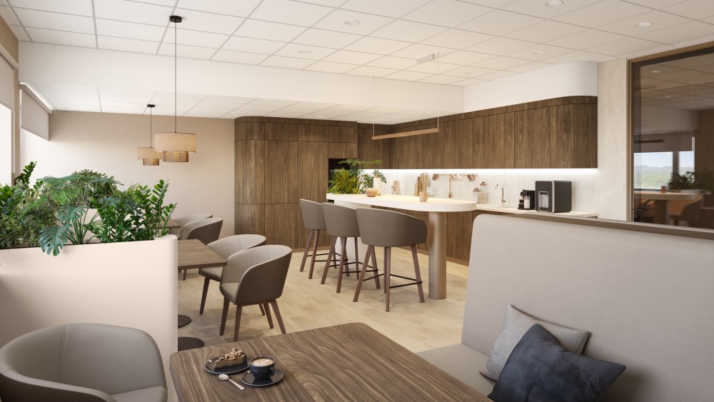 Az egyes funkciókat tágas közös térben helyeztük el, de egymástól attraktív leválasztásokkal szeparáltuk, hogy a különböző csapatok önálló és kollaborációs munkáikat is hatékonyan végezhessék a mindennapok során. A munkaterekhez kapcsolódó közösségi zónákat kényelmes, funkciónak megfelelő berendezéssel látjuk el, ami diverz platformot biztosít, nemcsak kötetlen beszélgetésekhez, vagy egy kávéhoz, hanem formálisabb egyeztetésekhez is.