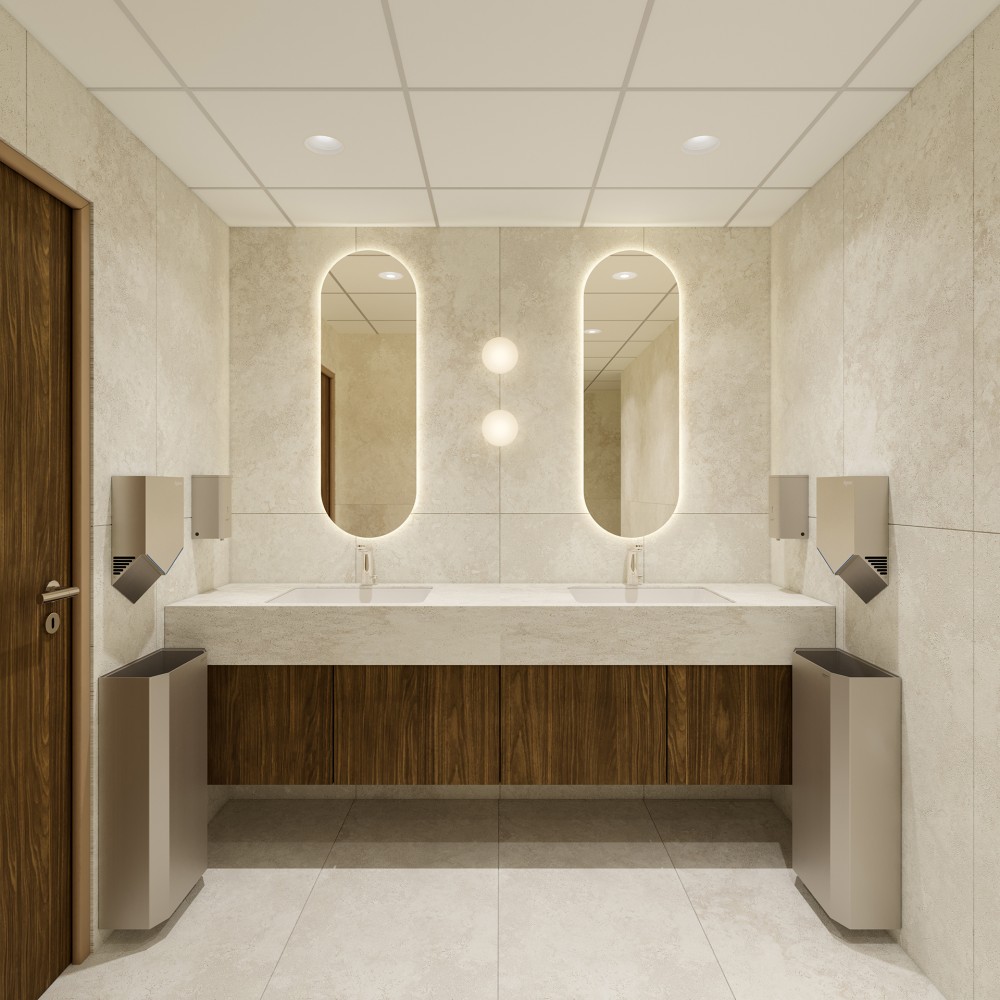 A színvilág meghatározásánál szintén az elegáns, de egyben meleg, otthonos hatás elérése került előtérbe. Mindezt kiegészítve a vizesblokkok szintén magas minőségű kialakításban készülnek el, figyelve arra, hogy a felhasználók minden apró részletben minőséggel és igényességgel találkozzanak. A látványos zöldfelületek az irodatérben domináló bézs és dió árnyalatokat kiegészítik, míg a fókuszpontokat kiemelik.