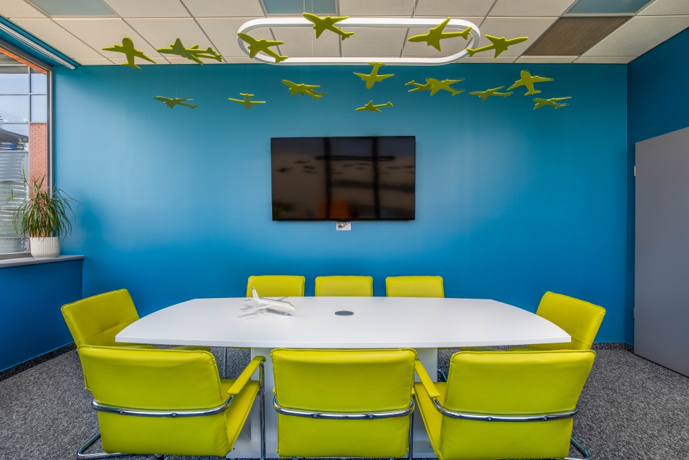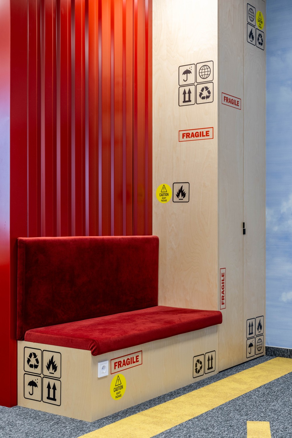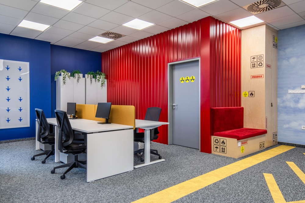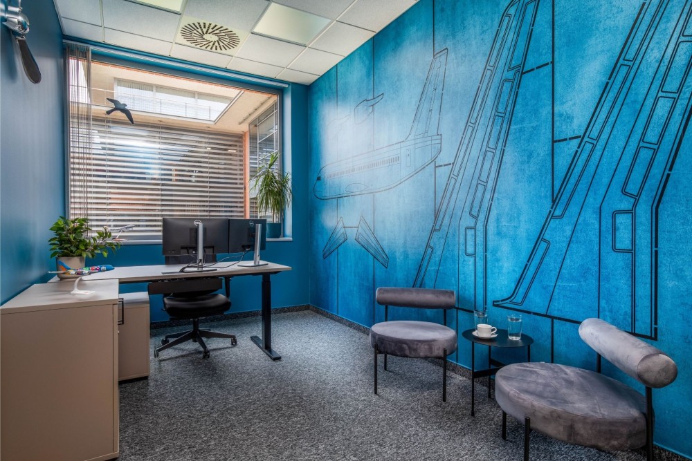 A tervezés során a fő hangsúlyt az egyedi, kreatív látványelemekre helyeztük, amelyek közvetlenül utalnak a cég légiszállítmányozási profiljára. A célunk egy olyan munkakörnyezet kialakítása volt, ahol a funkcionalitás és a márkaélmény kéz a kézben jár – egy inspiráló, dinamikus tér, amelyben jó dolgozni, és ami vizuális élményt is nyújt.