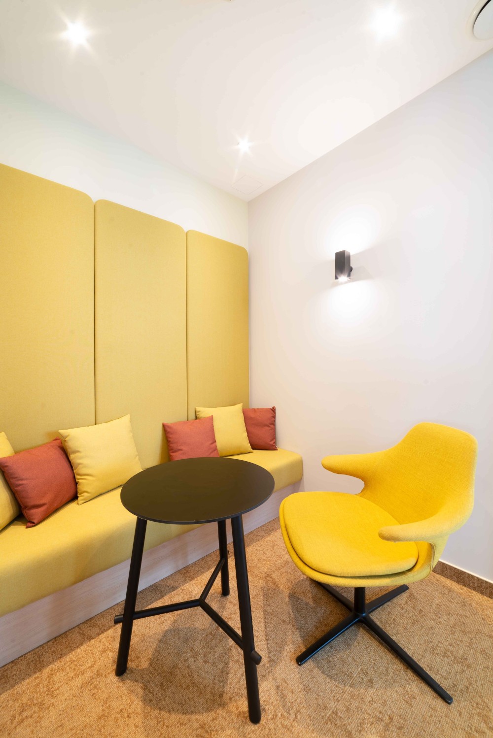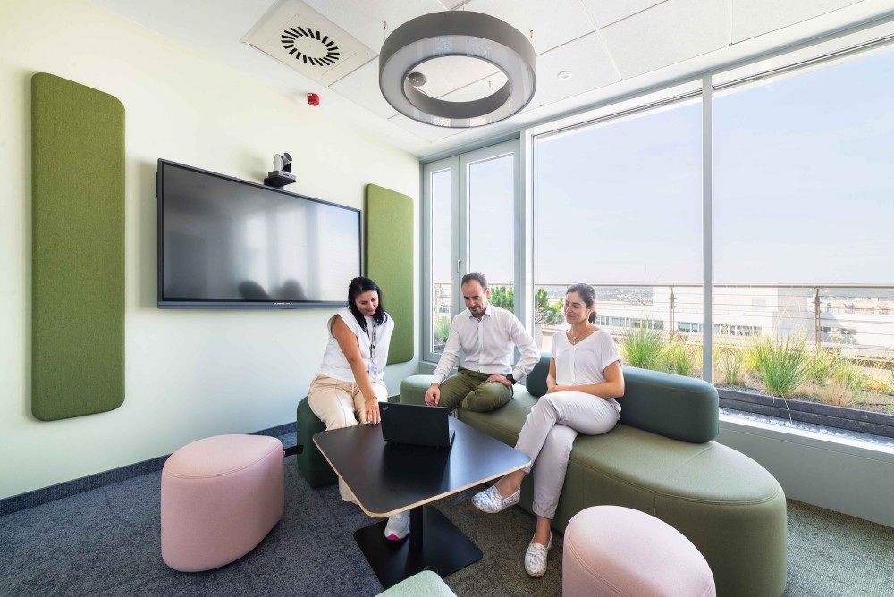 A csapatok számára olyan környezet jött létre, amelyet saját működésükhöz igazíthatnak – a Shape és Timeline elemek mentén. A whiteboard felületeket megtartottuk, a kevésbé funkcionális elemeket pedig új életre keltettük. Az új mobil bútorok a meglévőkhöz igazodnak, a korábban heterogén terekből pedig egy koherens, jól működő rendszer jött létre.