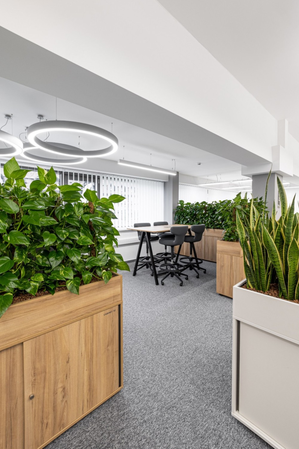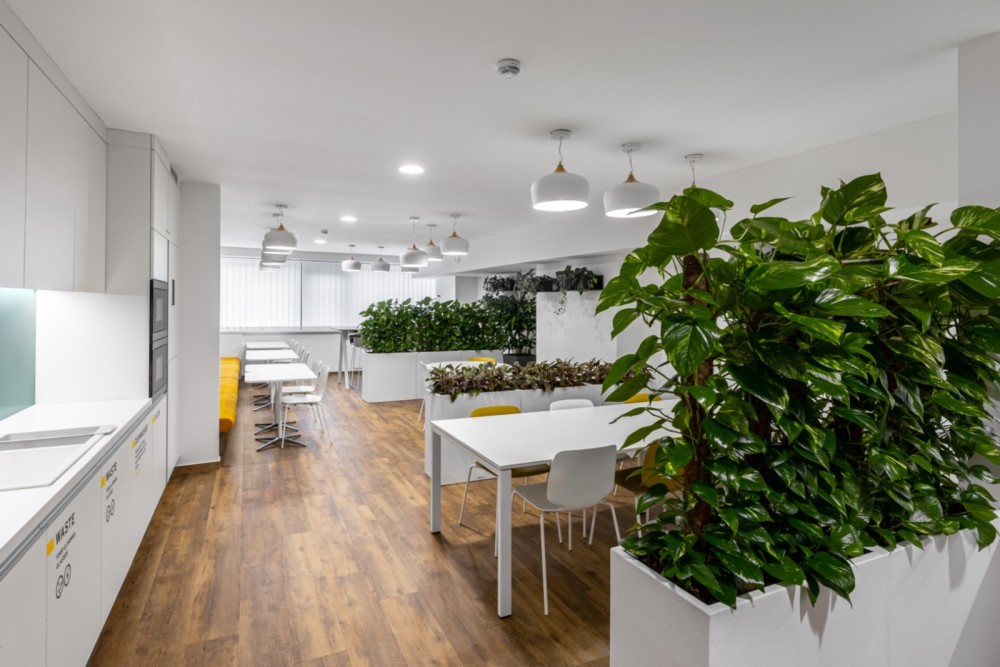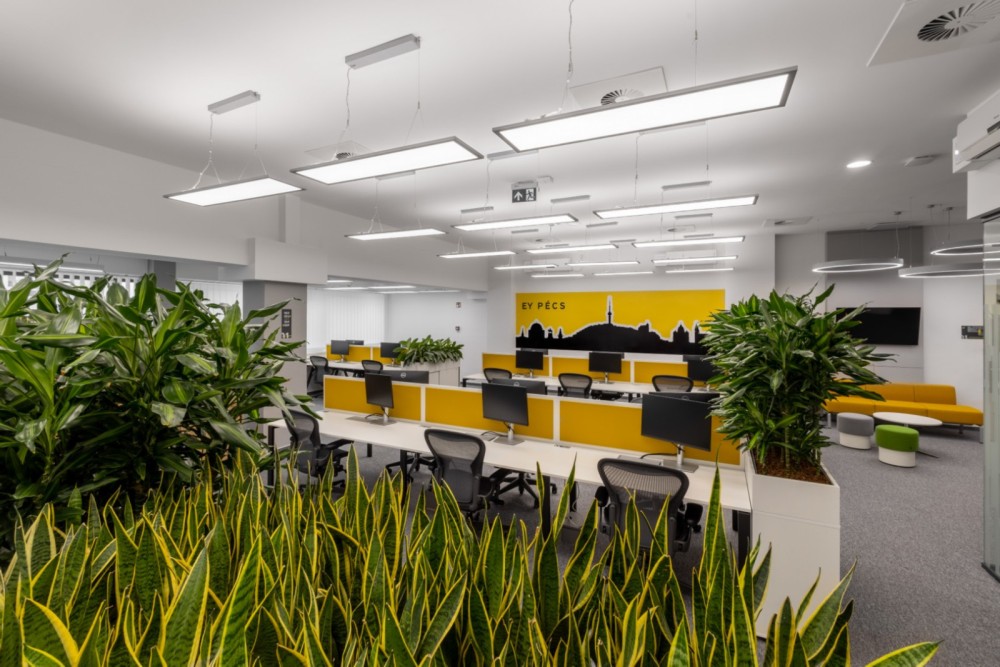 • 600 növényt ültettünk be az új irodatérben, amelyek az egészséges páratartalom szintjéről gondoskodnak, és jó közérzetünkhöz is hozzájárulnak
