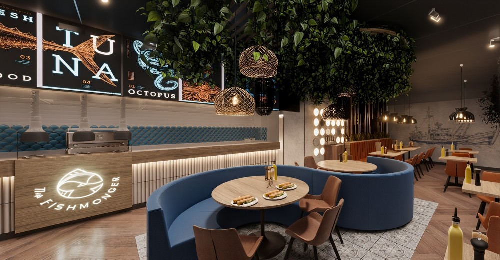 A Fishmonger – (Budaörsi Halpiac) egy olyan komplex, többfunkciós tér, amely a halkereskedelmet, a feldolgozást, a gasztronómiát és a közösségi funkciókat egységes koncepció mentén integrálja. A projekt alapelve az átlátható működés: az ipari folyamatok és a mindennapi üzem nem elkülönített háttérfunkcióként jelennek meg, hanem a tér aktív, látható részeként, hiteles és edukatív élményt teremtve.