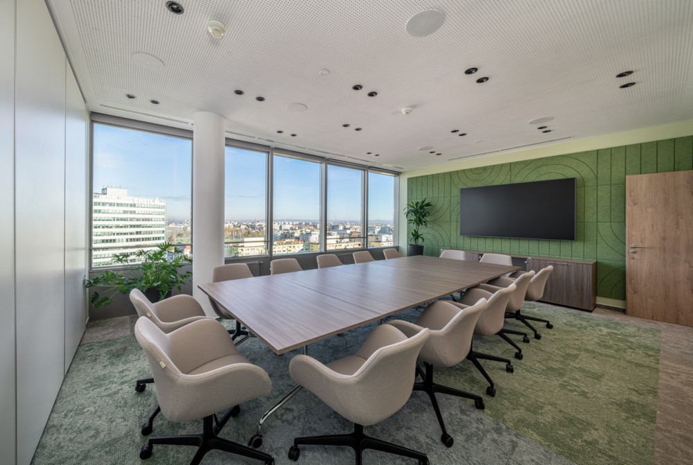 Az iroda továbbá high-tech megoldásokkal is rendelkezik, amelyek növelik a munka hatékonyságát és minőségét. A vezetői irodákban és a tárgyalótermekben interaktív smart kijelzők kerültek elhelyezésre, amelyek lehetővé teszik a multiperszonális írást, rajzolást, prezentálást és megosztást. A tárgyalóterembe beépítésre került egy audiorendszer, valamint egy fali touchpanel is, amely a kijelzők vezérlését teszi lehetővé. A tárgyalótermek bejáratánál érintőképernyős teremfoglaltságjelző panelek találhatóak, melyek a naptárrendszerrel szinkronizálva mutatják a tárgyalók foglaltsági állapotát, valamint lehetőséget adnak az ad-hoc foglalására is.