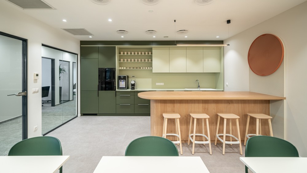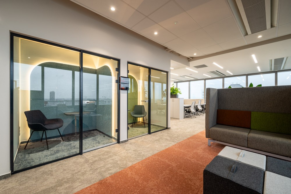 Az iroda kialakításánál a cég nagy hangsúlyt fektetett a munkáltatói márkaépítésre, a funkcionális terekre, az emberközpontúságra és a high-tech megoldásokra.