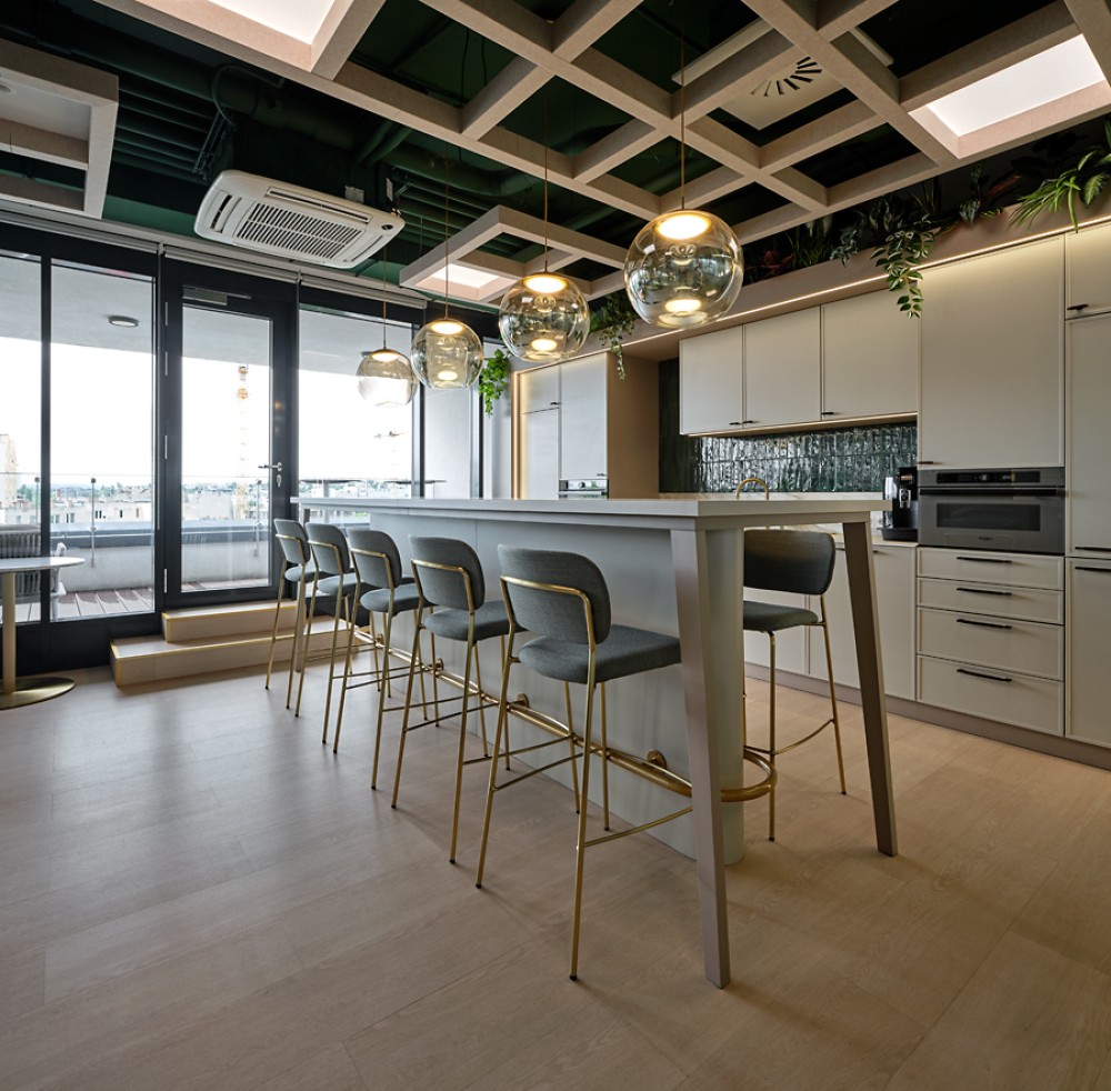 – Két konyha „café-style” közösségi zónákkal, amelyek a kollégák kedvenc találkozópontjai és spontán megbeszélések helyszínei.