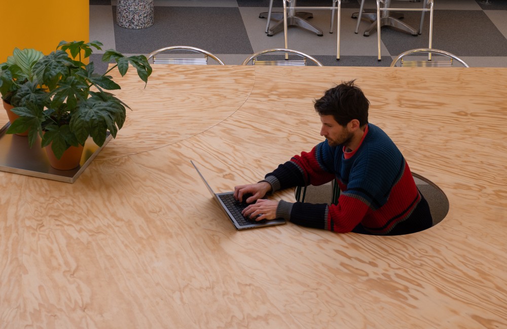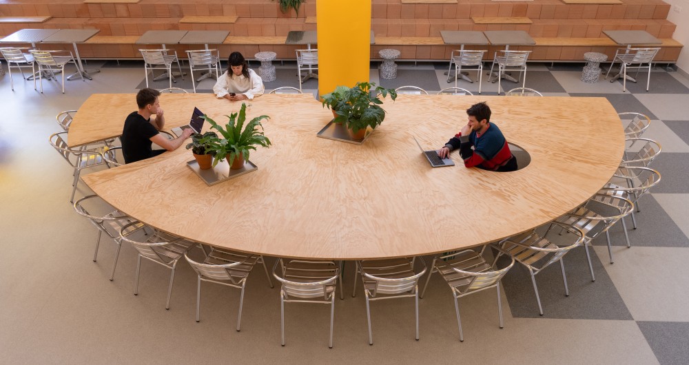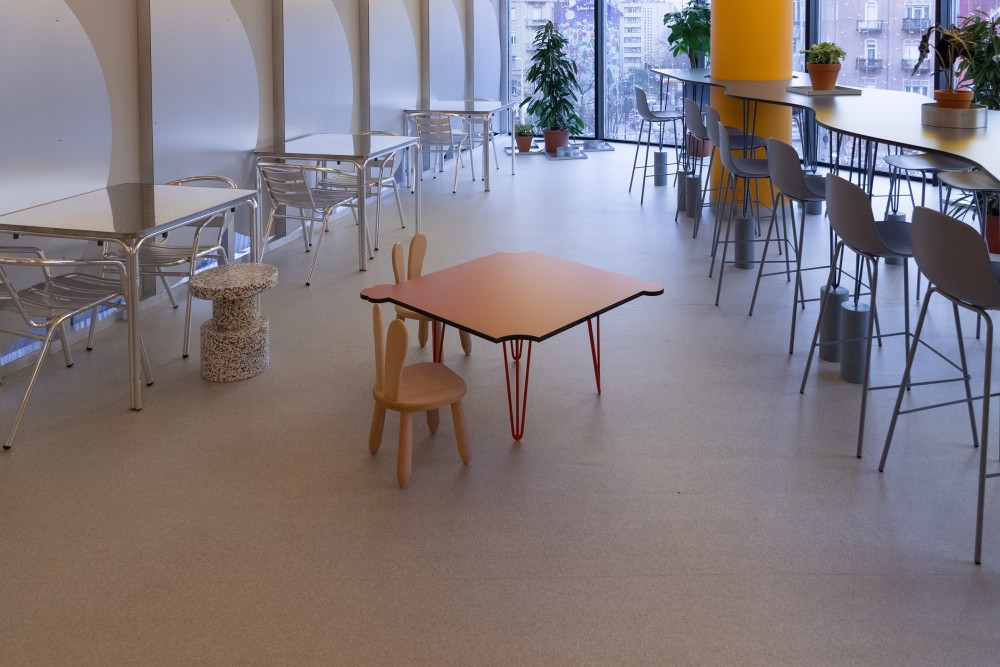 A tér közepén kapott helyet Budapest legnagyobb közösségi asztala. Ez a huszonegy férőhelyes étkezőhely, külsős programok helyszíne is lehet, de mérete miatt 3 kisebb csoport is szabadon körégyűlhet. Az asztal két különleges ülőhelye pedig játékos élményt kínál azoknak, akik bátran kipróbálnák az asztal közepébe integrált "ülőfülkét" is.