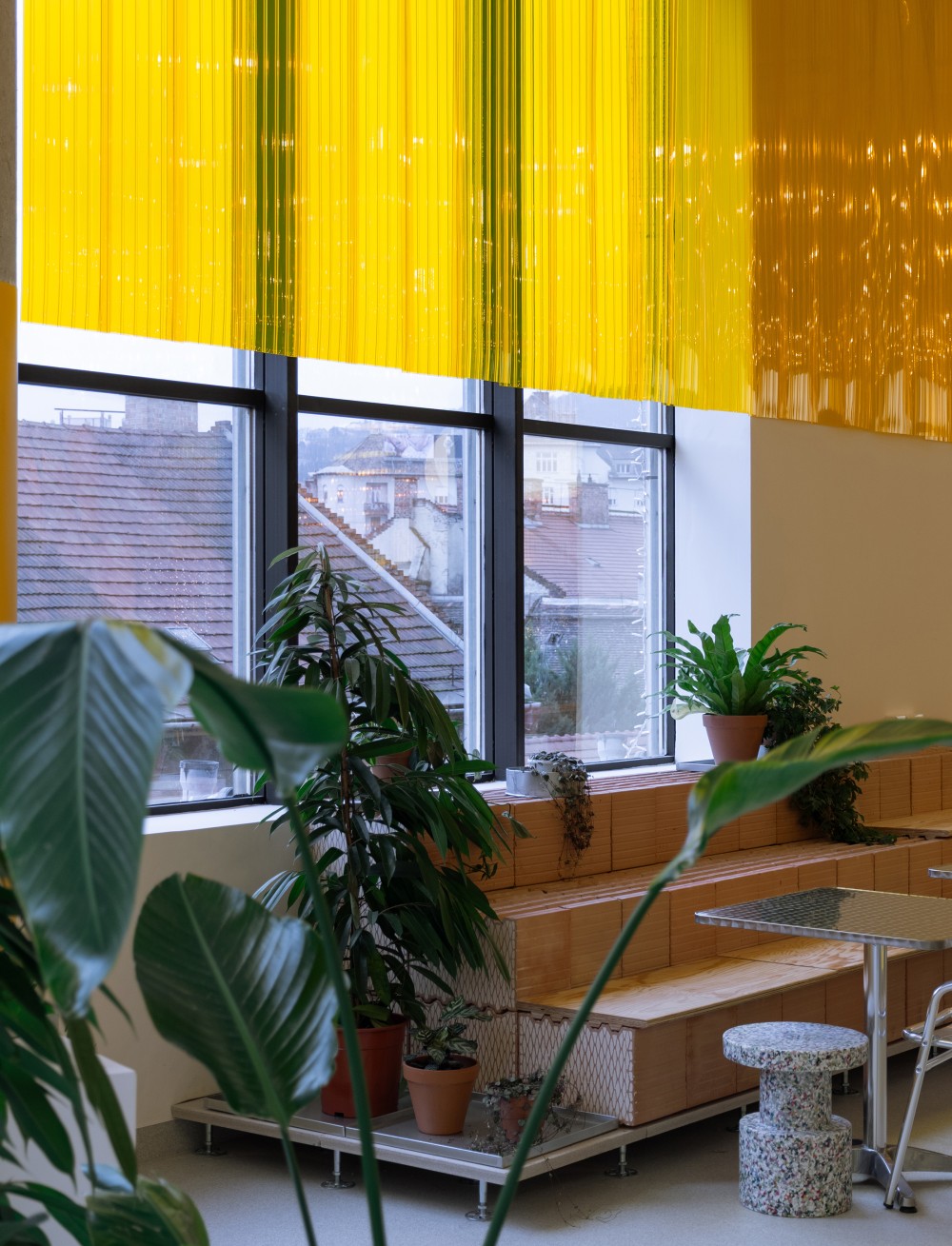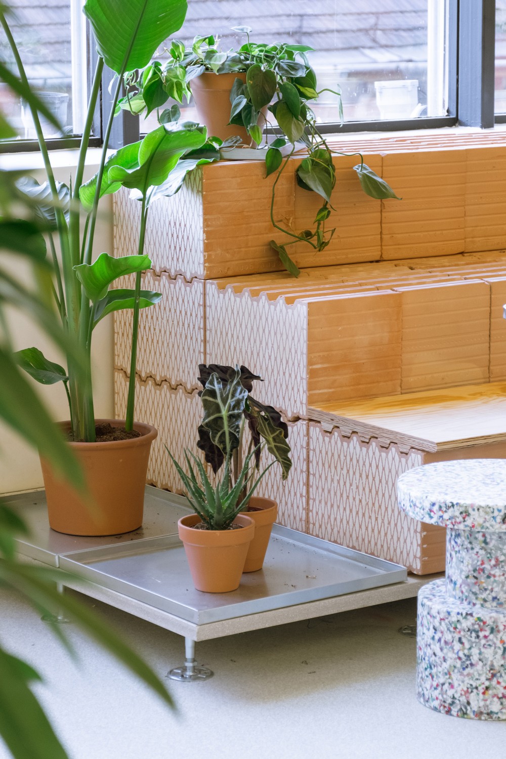 A Növényeket egy otthon természetességével szerettük volna integrálni, hogy azok könnyen fenntarthatóak és gyorsan, egyszerűen pótolhatóak és cserélhetők legyenek. Ez pedig passzolt a tér anyagkoncepciójához.