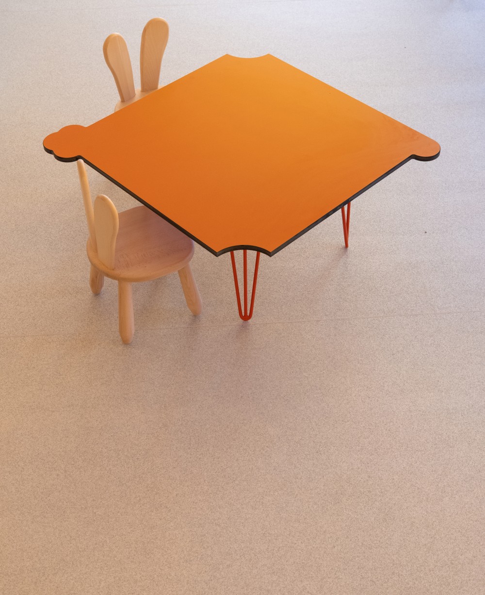 A legkisebbek számára külön gyerekasztalok készültek, amelyeket könnyen bármely másik asztalhoz oda lehet húzni, vagy akár egy nagyobb, önálló gyerekasztallá is össze lehet rendezni. A kisasztalok geometriai kialakításánál pedig törekedünk arra, hogy a gyerekek fantáziáját is megmozgassuk.