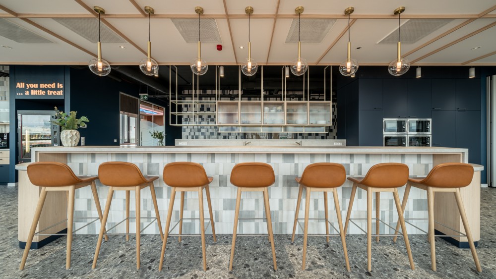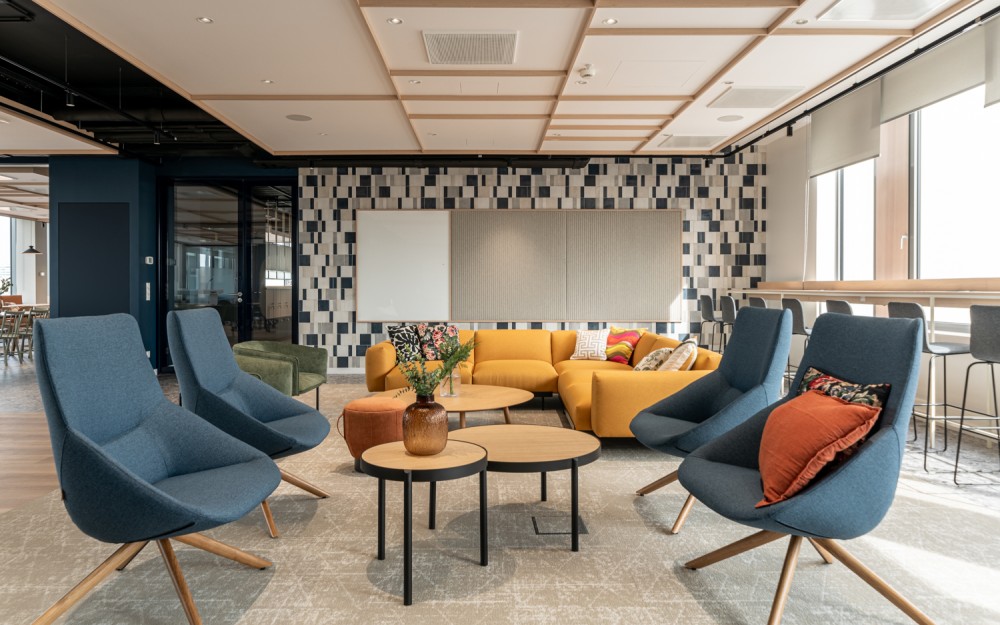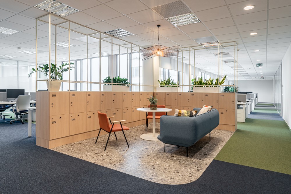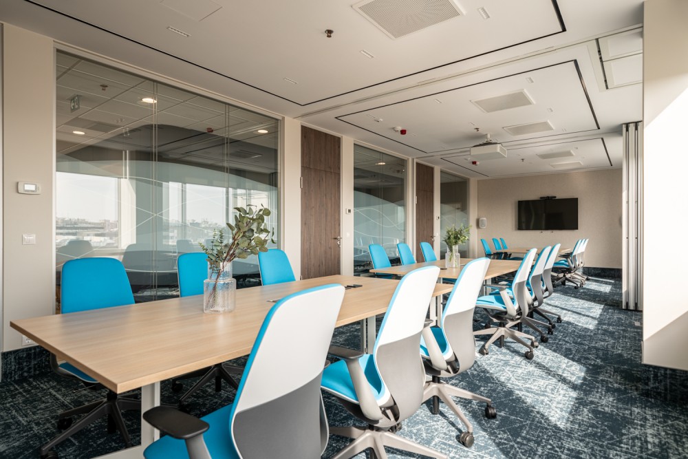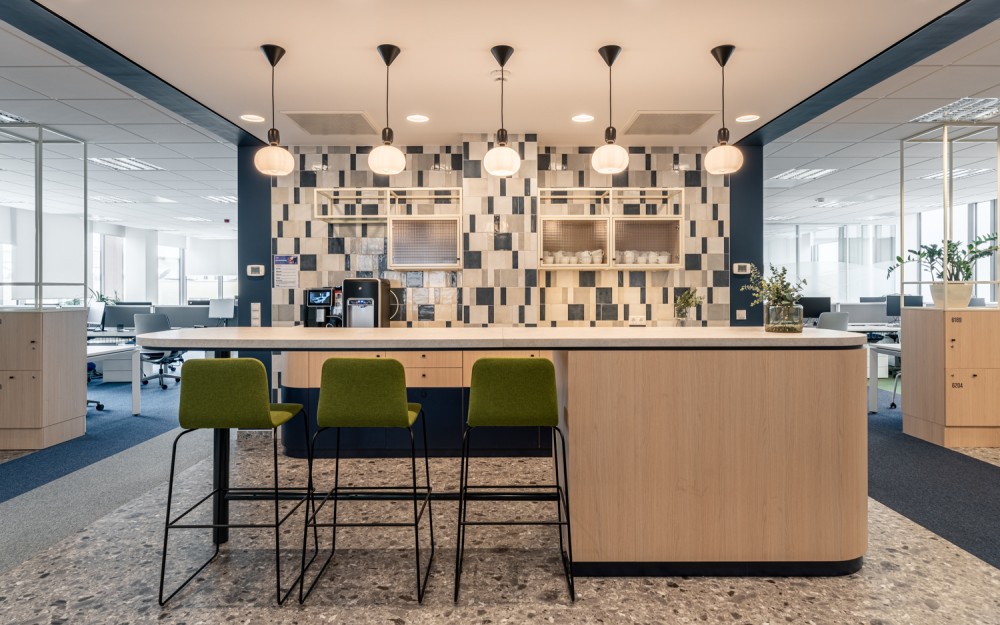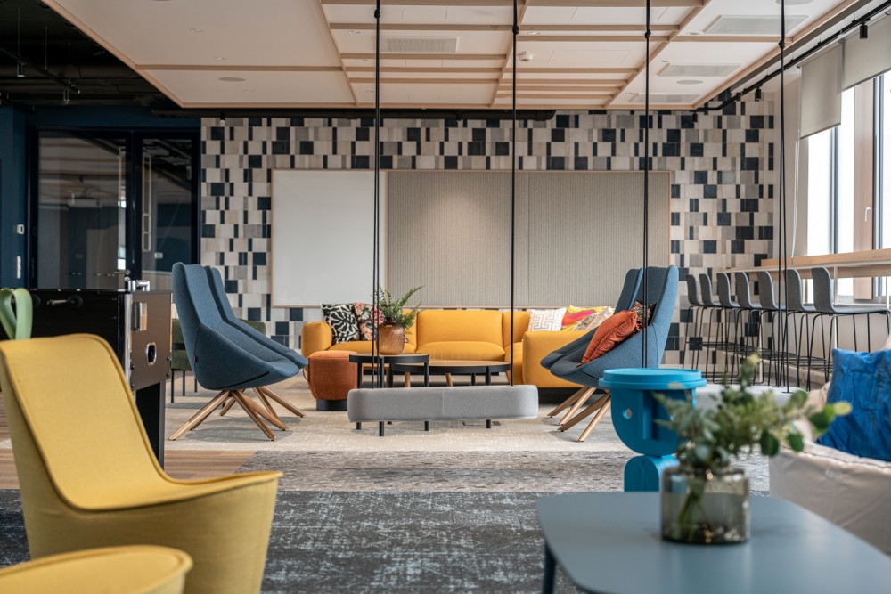 A vállalatunk egy több, mint 600 főt foglalkoztató, 30+ nemzetiséget számláló, többségében Z generációs fiatalokból álló globális tanácsadó cég. Az új irodatér kialakításánál a kihívásaink a változó igényekhez való rugalmas alkalmazkodni tudás, az eneteriőrök által megteremthető hétköznapi harmónia, és a különböző közösségi események befogadására való alkalmasság voltak. Sikerünk leglátványosabb bizonyítéka az iroda piactere, a két épületszárnyat összekötő, 100 fő befogadására alkalmas Agora, amely ebédidőben megtelik a fiatal kollégák jó hangulatú, zajos beszélgetéseivel, máskor pedig befogadja az üzletmenet sikerességét támogató vezetői Town Hall értekezleteket is, ahová az események előtt forrócsoki standdal, máskor müzlikostlóval csalogatjuk a munkatársakat. A fix irodák mellett online előfoglalható helyiségek minden létszámhoz és munkamenethez igazodni tudnak, legyen akár a fókuszált megbeszélés, akár a kreatívabb diszkusszió az értekezlet célja.