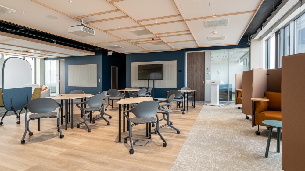 A tervezési folyamat során aktívan bevontuk a munkavállalókat: egy 15 fős, minden osztályt képviselő munkacsoport alakult, amelynek tagjai közvetlenül formálták az iroda új kialakítását. Célunk egy olyan modern, családias környezet megteremtése volt, amelyben minden kolléga szívesen dolgozik, és amely támogatja az osztályok hatékony működését.