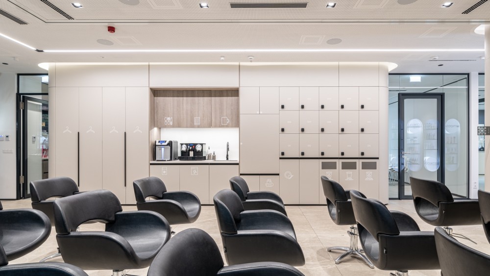 “Create the beauty that moves the world” – a L’Oréal Magyarország nemrégiben átadott új központi irodája mellett egy fodrászati oktatóközpontot is kialakított. Az Academy térszervezése a többfunkciós használati igényekhez igazodik, anyaghasználatát pedig a márka stílusjegyei és a fenntarthatósági alapelvek egyaránt meghatározzák. Az elegáns, letisztult dizájn reflektál a márka gazdag örökségére, így a sokszínű portfólióba tartozó termékcsaládok neutrális környezetben jelenhetnek meg. A tér megfelelő hátteret biztosít a márka érvényesüléséhez, 114 éves történelmének méltó reprezentálásához, valamint jövőbeli céljainak eléréséhez egyaránt.