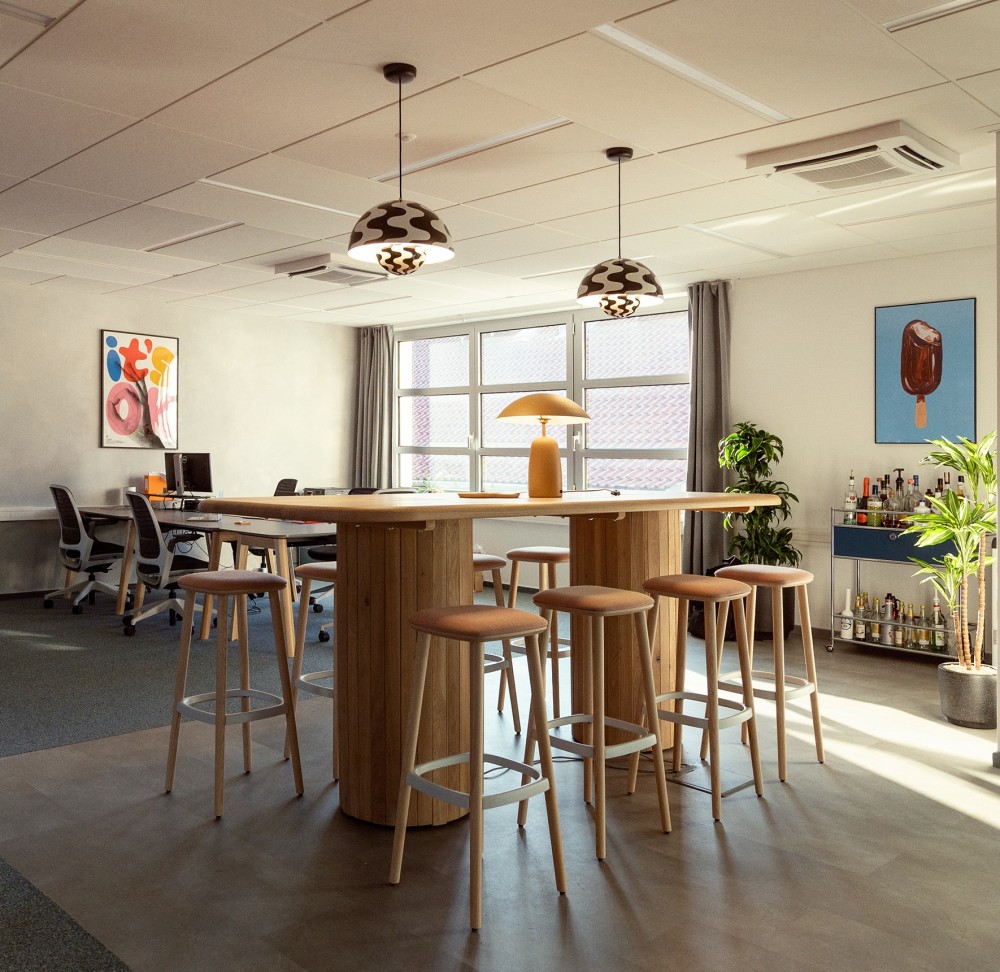 Hűen ahhoz, ahogy a cégünk működik, a tervezés is tele volt fordulatokkal. Előzetes koncepcióval indultunk, de ez hamar átváltott folyamatos (újra)tervezéssé, mert útközben jöttek váratlan helyzetek, és sokszor egyszerűen csak izgalmasabb megoldásokat találtunk. Utólag visszanézve ezek a kitérők rengeteget hozzátettek ahhoz, hogy az iroda végül igazán összeálljon, és egy olyan hely jöjjön létre, ahová jó betérni egy megbeszélésre, tárgyalásra vagy akár a mindennapi munkavégzésre. (Ráadásul minden évben tartunk egy ügyfélpartit az irodaházban, házibuli jelleggel, és idén az új iroda tökéletesen ráerősített erre a hangulatra.)