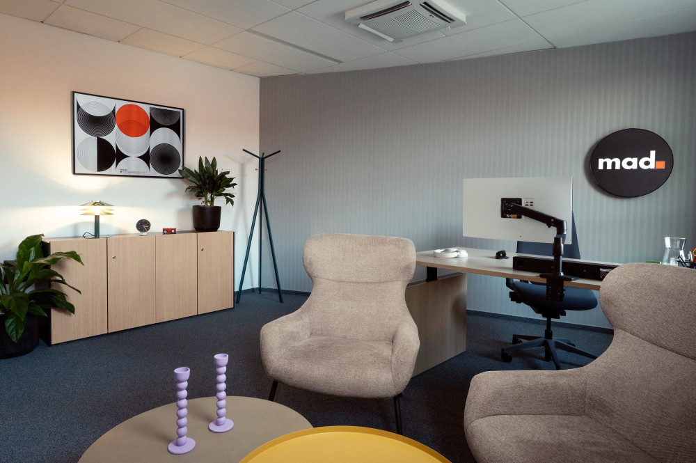 Ami még nagyon fontos, hogy Andrással (Hitka András, belsőépítész tervező, interior designer) teljesen egy hullámhosszra kerültünk. Rengeteg közös ötlet abból született, hogy sok időt töltöttünk együtt különböző bútorboltokban és helyeken, miközben arról beszélgettünk, mi áll igazán közel a céghez. Ezek a beszélgetések inspiráltak számos választást az irodában.