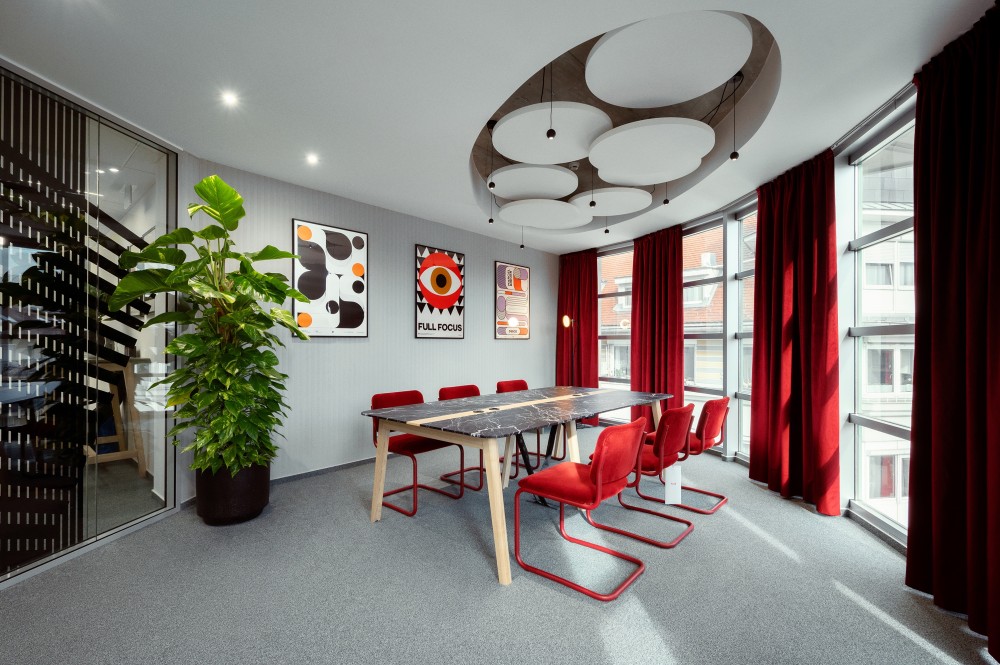 Számomra pedig egy apró személyes siker is kapcsolódik az új irodához: meg tudtuk valósítani azt a szempontot, ami a cégünkben gyakran jellemző ránk, hogy elsők vagyunk egy hirdetési felületen (a mi hirdetésünk volt például az első annak idején a Tiktokon vagy Pinteresten). Most ugyanezt bútorból is hoztuk: az új Cesca dark red vázas szék először a mi irodánkba volt Magyarországon, és valószínűleg Európában is.