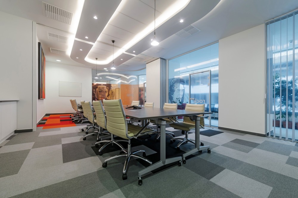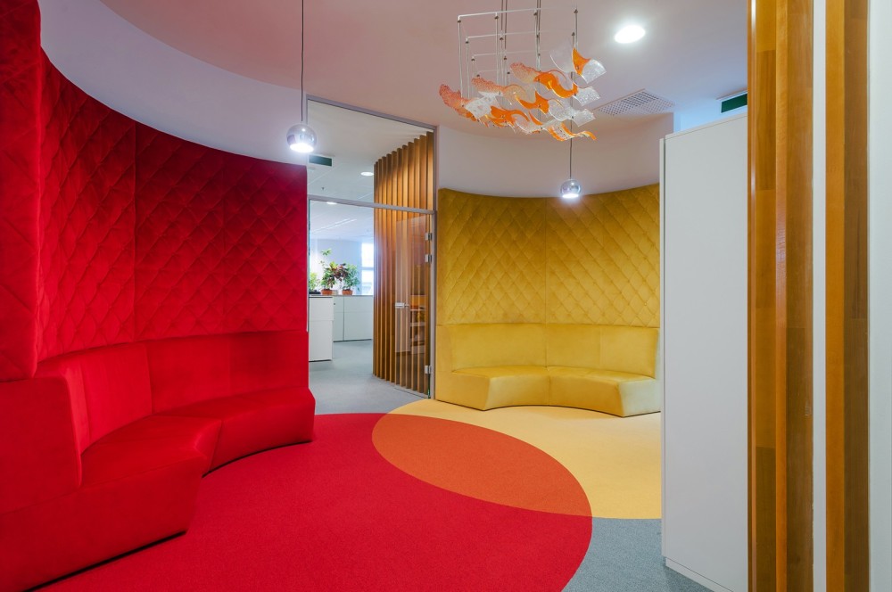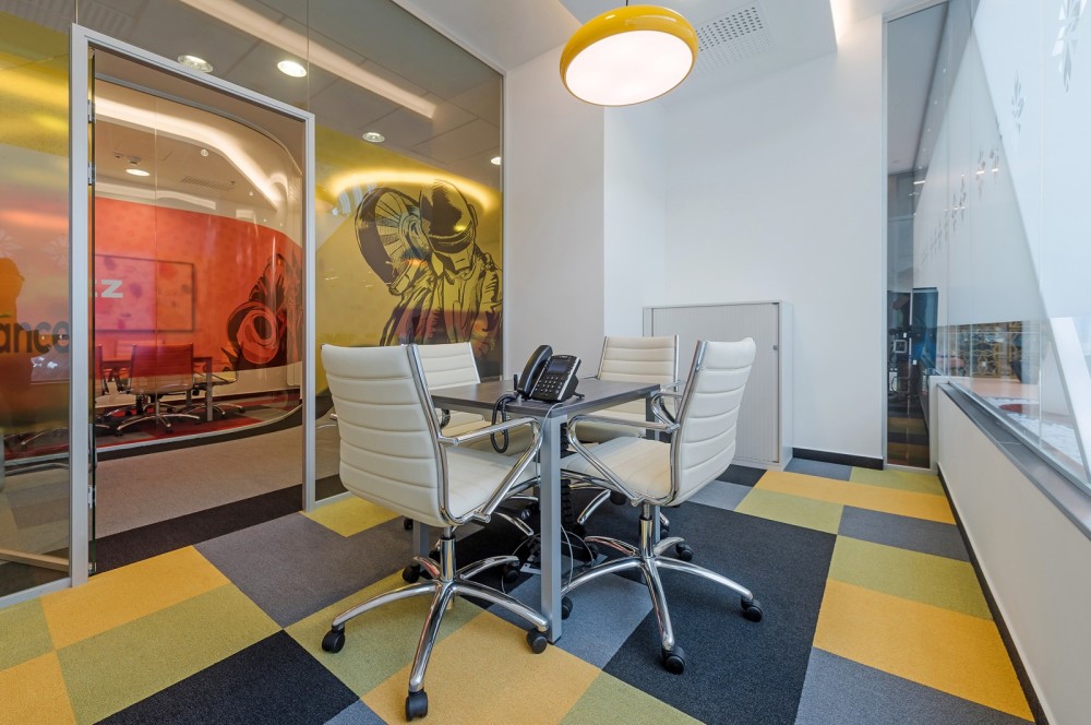 Igazán formabontó lett a két kisebb egységből álló, kettéválasztható terekkel is bíró (pop/rock) nagytárgyaló ügyfélbarát kialakítása. Nem követ dizájntrendeket, nincsenek hivalkodó díszítőelemek, egy természetes munkakörnyezet jellegzetes benyomását kelti. Kortárs magyar képzőművészek alkotásai kaptak helyet a tárgyalókban, amelyek éppúgy hozzájárulnak az adott tér karakteréhez, mint a színkódolás.