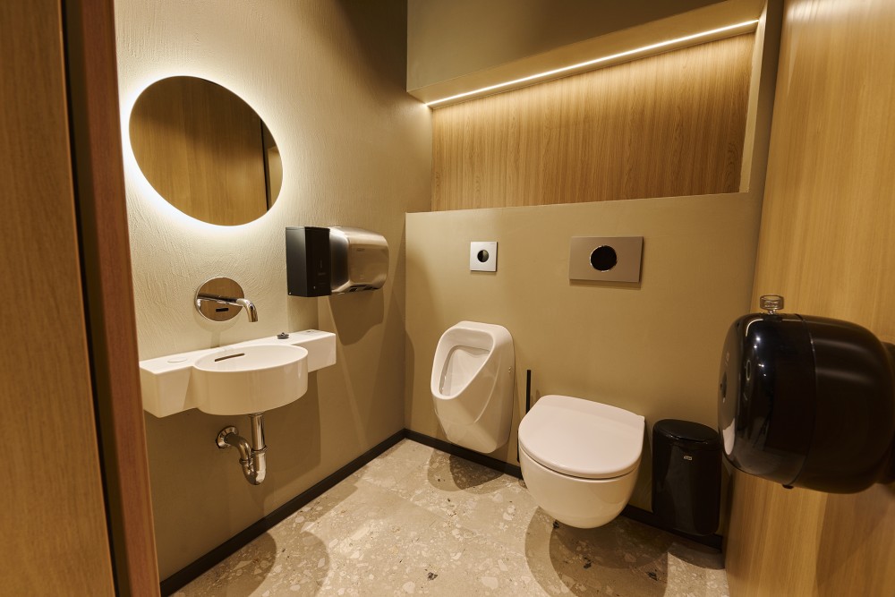 Az OTP Ingatlanbefektetési Alap célja, hogy a létesítmény minden szeglete a prémium, piacvezető kialakítást tükrözze. Legyen szó a közös területek bármely részéről, a cél az exkluzív kialakítás hazai neves belsőépítészek, tervezőművészek bevonásával. Ezen szemlélet mentén az idei évben újultak meg a közösségi mosdók, melyek fontos elemei a társadalmi példamutatásnak és felelősségvállalásnak a családi mosdókkal, kulacstöltőkkel, baba-mama helyiséggel.