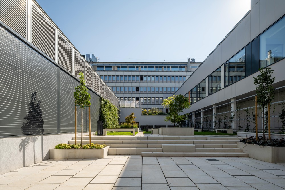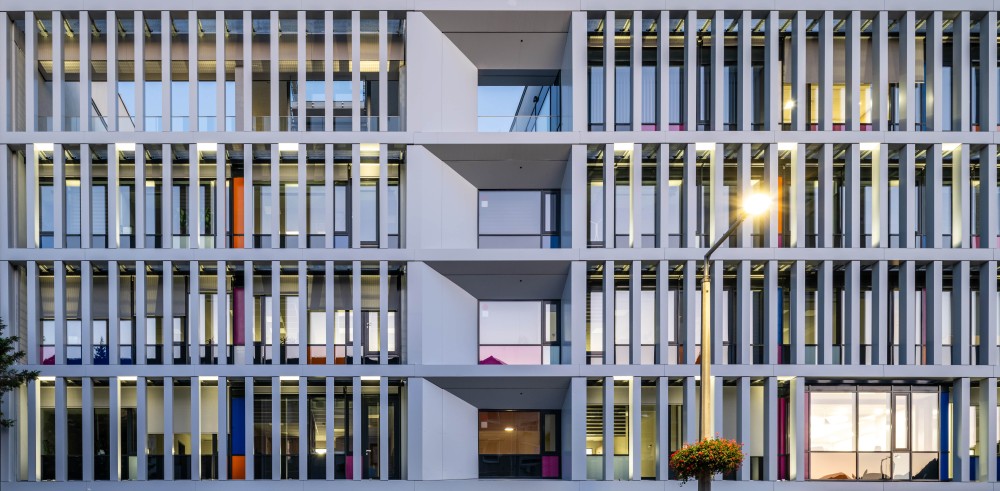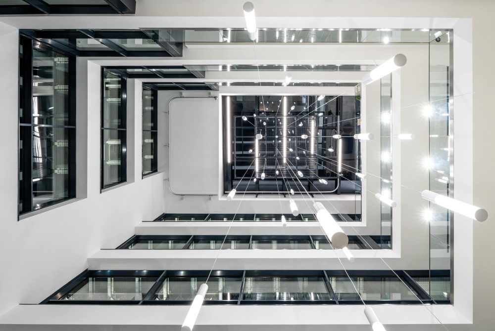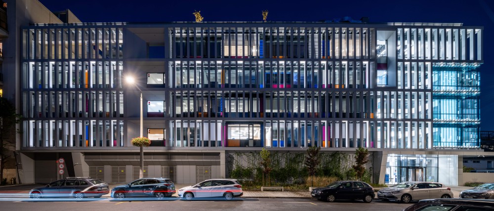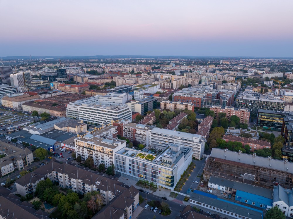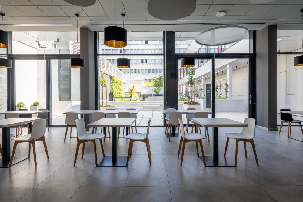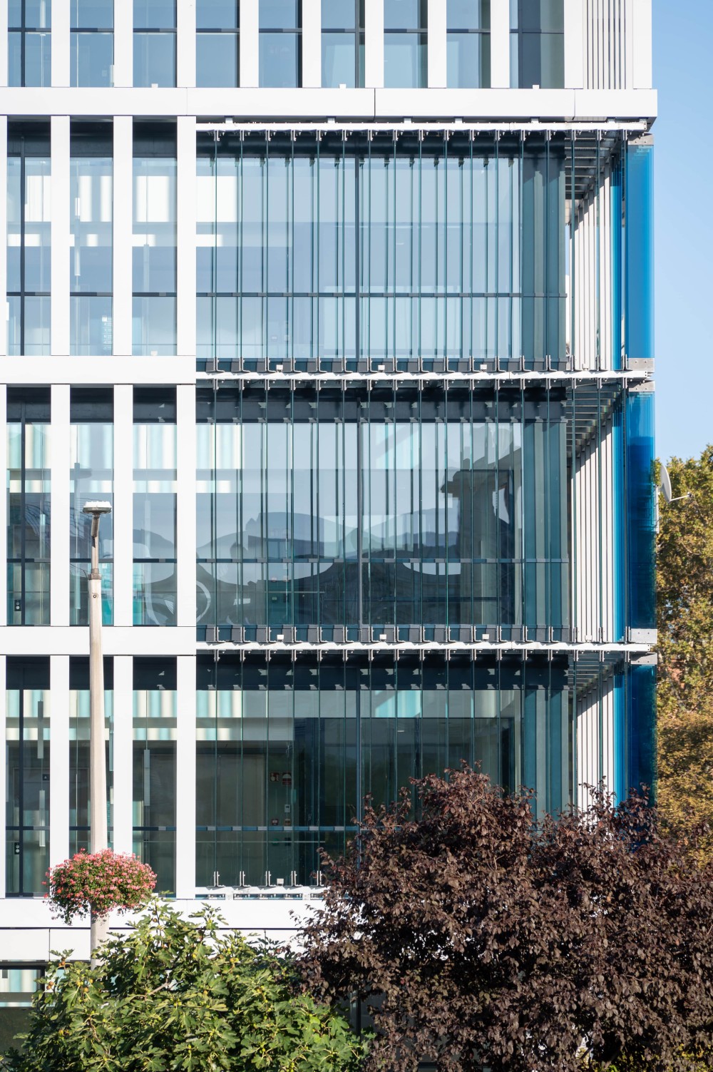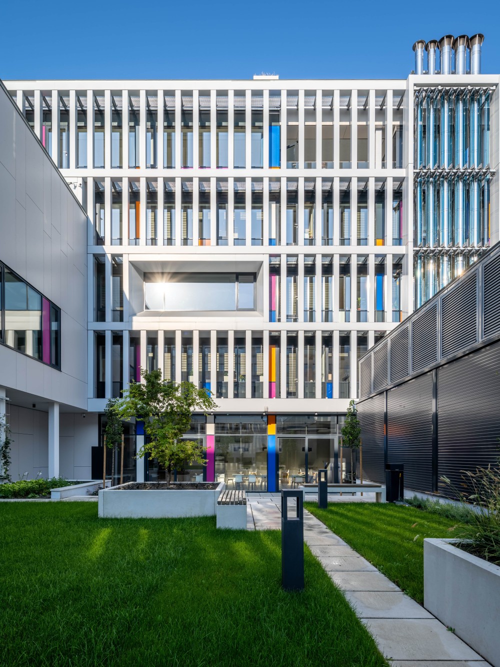 dB-es zajából az akusztikai megoldásoknak köszönhetően semmi nem hallatszik, nem zavarja az épületben folyó munkát, a környező lakóközösséget. Nagy figyelmet fordítottam a kulturált üzemeltethetőség miatt arra, hogy az ablakok könnyen hozzáférhetők, tisztíthatók legyenek. Nagyon sok hazai épületnél sajnos erre kevés figyelmet fordítanak, főleg az anyagi vonzata miatt. Itt viszont készült egy külön közlekedőrendszer az összes üvegfelület előtt, melynek köszönhetően teljesen hétköznapi módszerekkel karbantarthatók és tisztíthatók az ablakok, üvegfelületek. Ez a megoldás tette azt is lehetővé, hogy minden egyes iroda – annak ellenére, hogy el van látva automatizált hűtési, fűtési rendszerrel – természetes úton, ajtó- vagy ablaknyitással szellőztethető legyen. Ezt a természetes szellőzést viszont össze kellett hangoljuk az automatizált rendszerekkel az energiahatékonyság érdekében, azaz egy ablaknyitás esetén a hűtési/fűtési rendszer automatikusan leáll abban a helyiségben.”