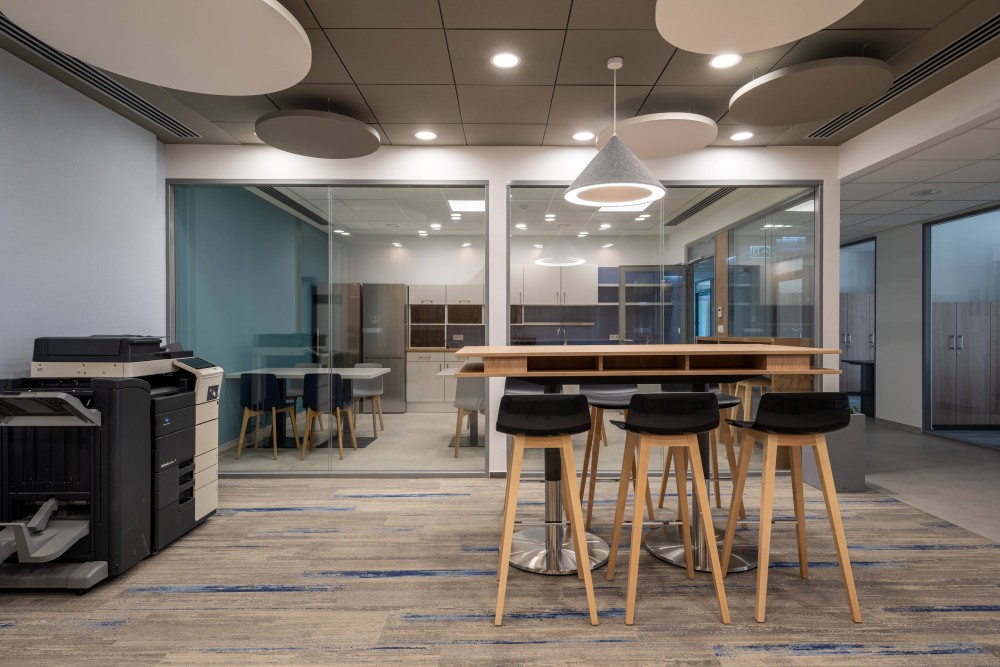 Az NMHH-nak van egy sajátos működése, és ehhez kellett 100%-ban igazodnia a tervezési munkának is, egy sablonos irodatervezés itt nem állta volna meg a helyét. A mérőlaborok esetében nagyon speciális, kvázi űrkörülményeket kellett létre hozni, mely rendkívüli precizitást követelt meg minden tekintetben. Alkalmazkodni kellett a mérőlaborok funkciójához, biztosítani kellett a tökéletes árnyékoltságot, hiszen a zaj- és sugárzásszennyezettség magát a hiteles mérést lehetetleníti el. Ennek biztosítására egy világszínvonalú technológiát építettek be. Emellett az akusztikára is komoly hangsúlyt fektetett a megrendelő. Mindenben az elvárható felett határozta meg az akusztikai teljesítményeket, annak érdekében, hogy a szomszédos épületek lakói semmilyen formában ne szenvedjenek hátrányt. Ennek megfelelően egy alapos akusztikai terv készült, melyet a Entel Kft. és Józsa Gusztáv készített el. A kivitelezés során nagy figyelmet fordítottak erre a területre, igazítottak a terveken szükség esetén. Ennek eredményeként például a korábbi autóforgalom okozta zajterhelés szinte megszűnt a háromszintes mélygarázs miatt, ahol a telephelyre érkező összes hatósági és dolgozói autó parkolhat az udvar helyett. Vagy az öt telepített generátor esetében bőven a határérték alá le tudtuk vinni a zajszintet, így azok 120