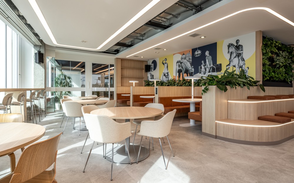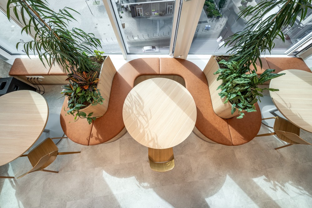 A tervezési folyamat átfogó kutatással indult: több vezetői és munkavállalói interjú, részletes kérdőív és közös workshopok segítették a tervezőcsapatot abban, hogy feltérképezze a Nilfisk működését, együttműködési kultúráját, céljait és a budapesti Hub szervezeti szerepét. A folyamat része volt a változásmenedzsment (change management) támogatása is, amely elősegítette a munkatársak zökkenőmentes átmenetét az új térbe, valamint az utókövetés, amely a használati tapasztalatok és visszajelzések alapján biztosítja a folyamatos fejlődést. Az így megszerzett tudás alapján az iroda térstruktúrája és funkcionális zónái teljes mértékben a Nilfisk működéséhez igazodnak. A térrendezés és a különböző divíziók ültetési javaslatai is azt a célt szolgálják, hogy a csapatok közötti együttműködés természetes módon valósuljon meg, miközben a fókuszált, egyéni munkavégzés is zavartalan marad.