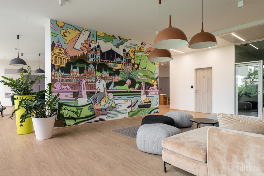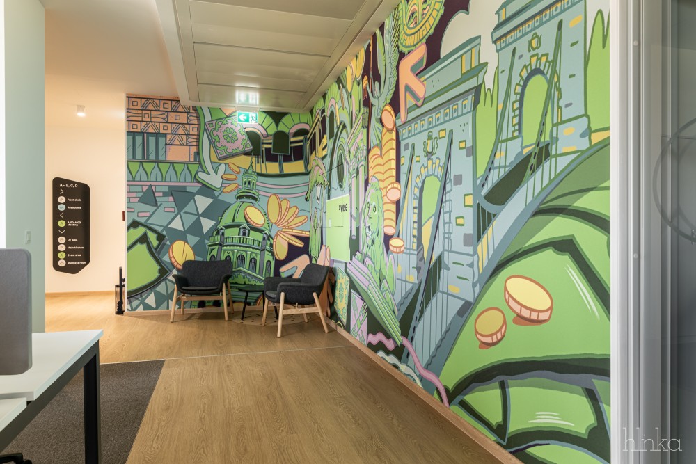 A Wise minden országban keresi a helyi identitást a helyi művészekkel való együttműködést, Buzás Aliz grafikus művészt vontuk be, hogy készítsen vibráló és mozgalmas egyedi falgrafikákat az irodában.