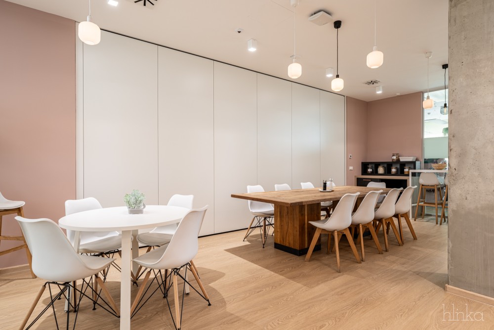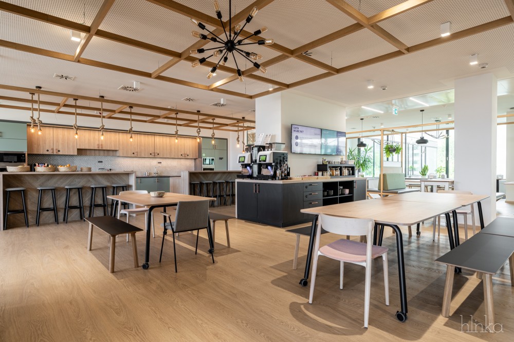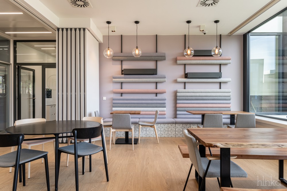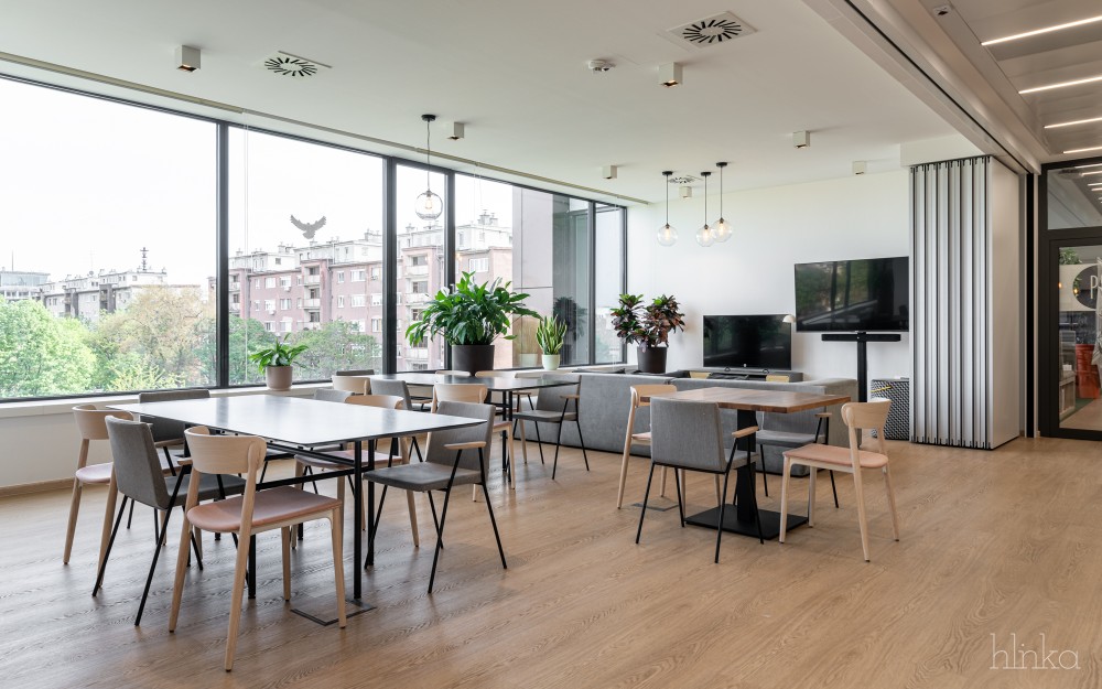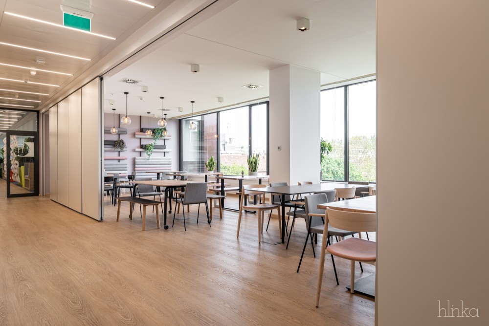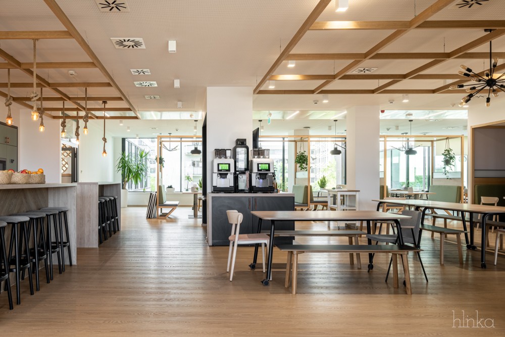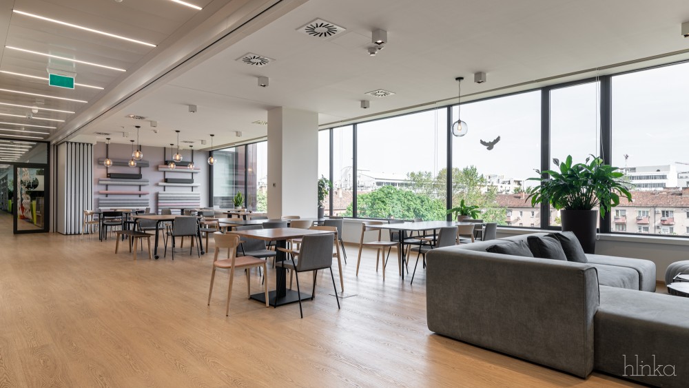 A meglévő kantinok területei újjászervezésre kerültek: a központi étkező kibővült, és egy mobilfallal leválasztható kollaborációs térrel, valamint egy új reggelizőpulttal gazdagodott. Az átalakítás célja egy inspirálóbb, nyitottabb és közösségibb munkakörnyezet megteremtése volt, amely támogatja a kreativitást és ösztönzi a vállalati növekedést.