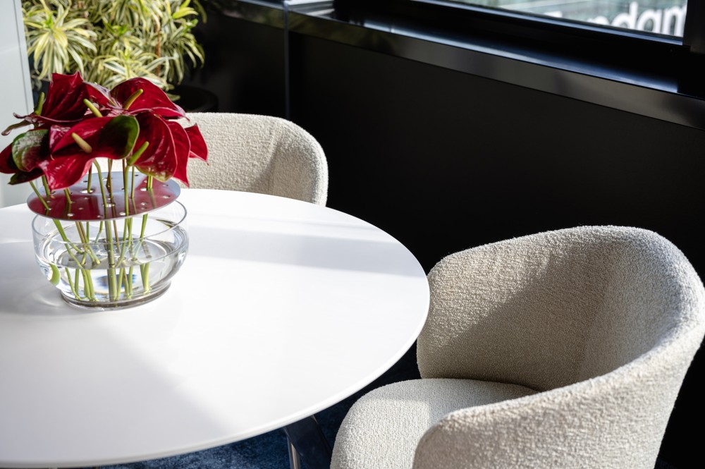 Az új helyszín kitüntetett pozíciója, a megbízó igényessége és a ide költőző egészségügyi intézmény küldetése egy magas nívójú irodatér létrehozását kívánta meg.